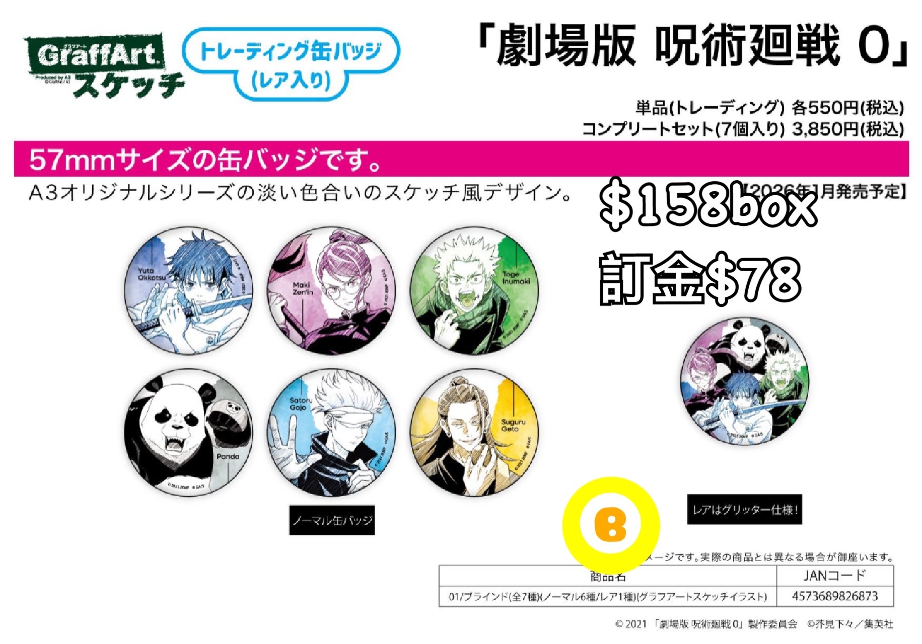 Preorder預訂1/2026年咒術迴戰0 01襟章原盒