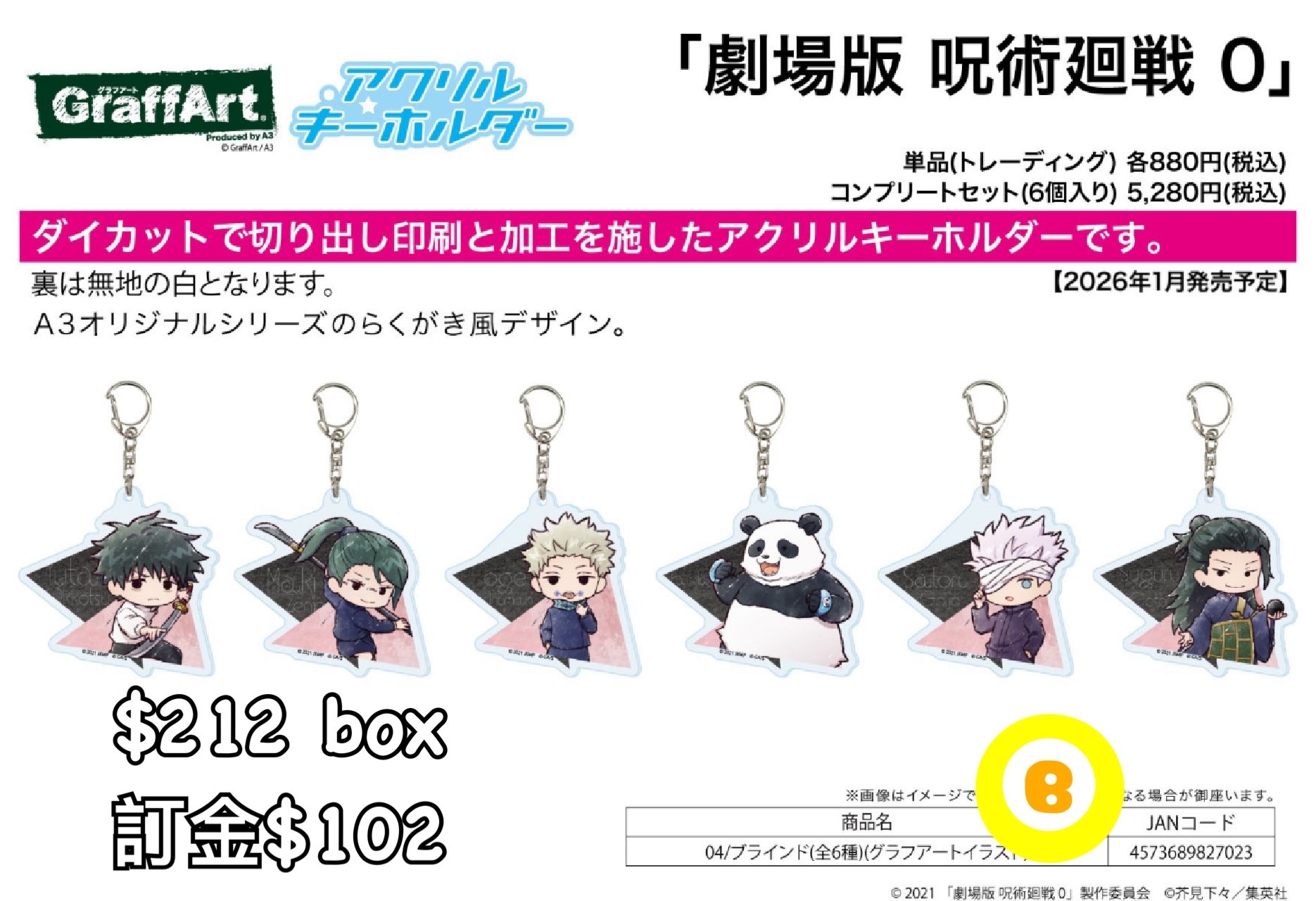 Preorder預訂1/2026年咒術迴戰0匙扣原盒