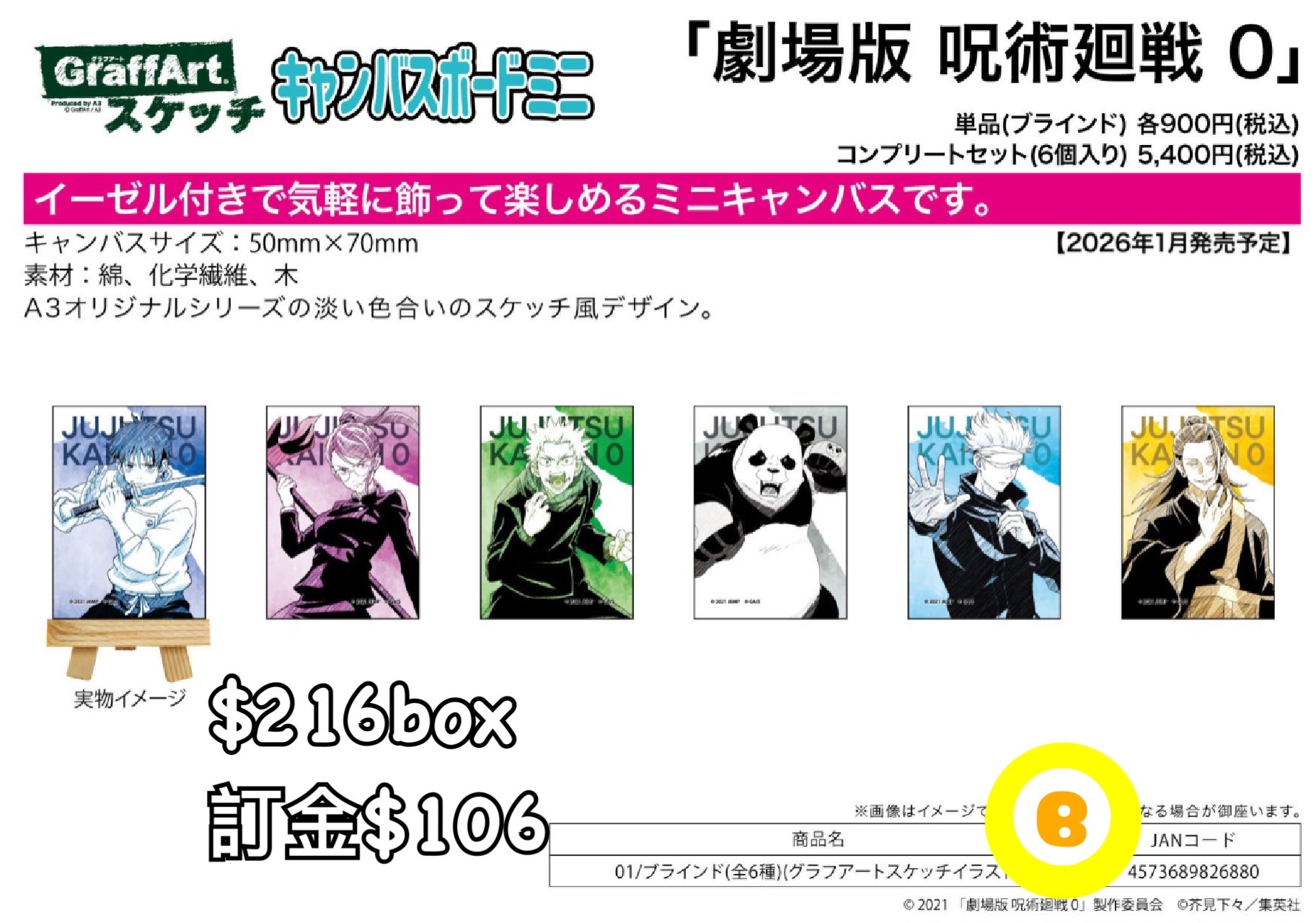 Preorder預訂1/2026年咒術迴戰0 mini canvas立牌