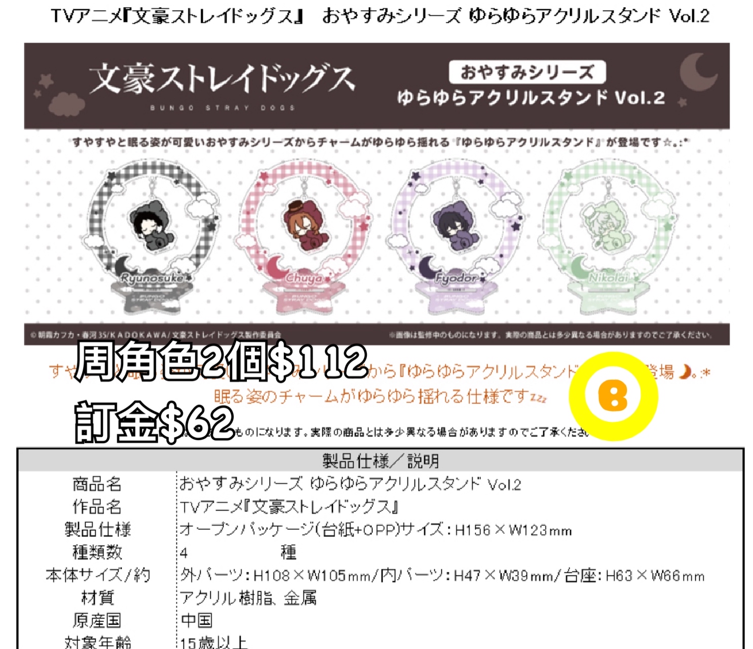 Preorder預訂1/2026年文豪野犬搖搖立牌vol2