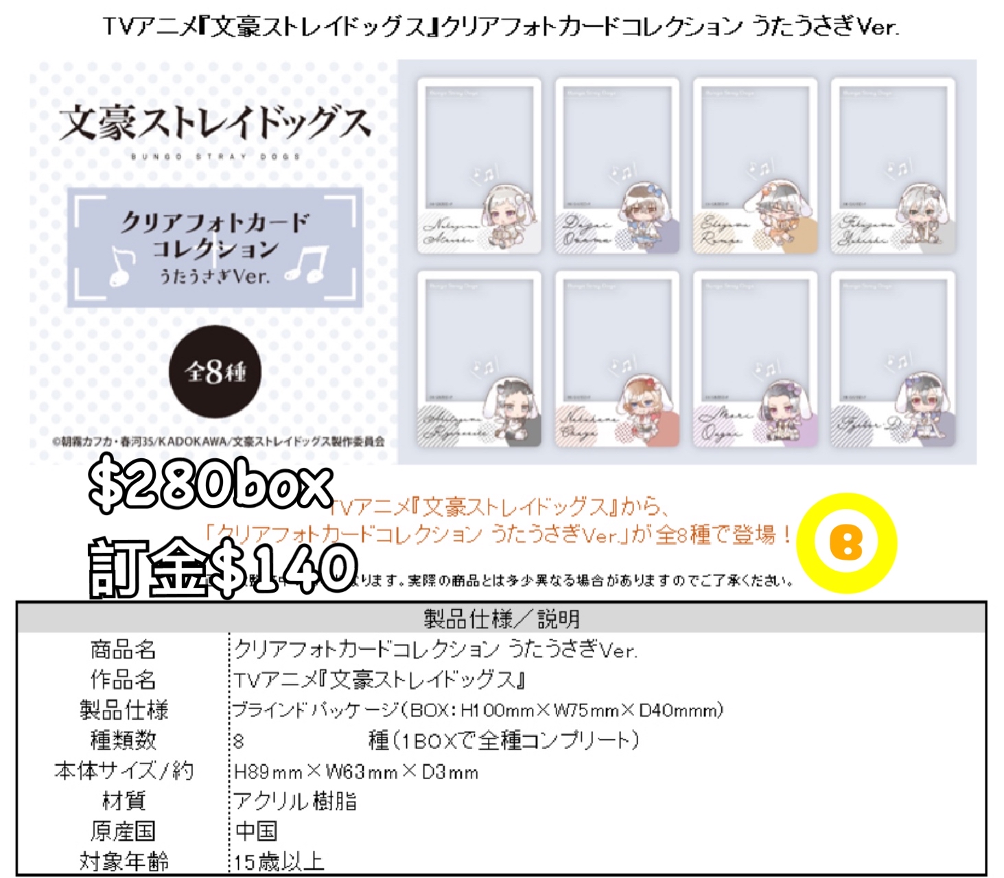 Preorder預訂1/2026年文豪野犬clear card原盒
