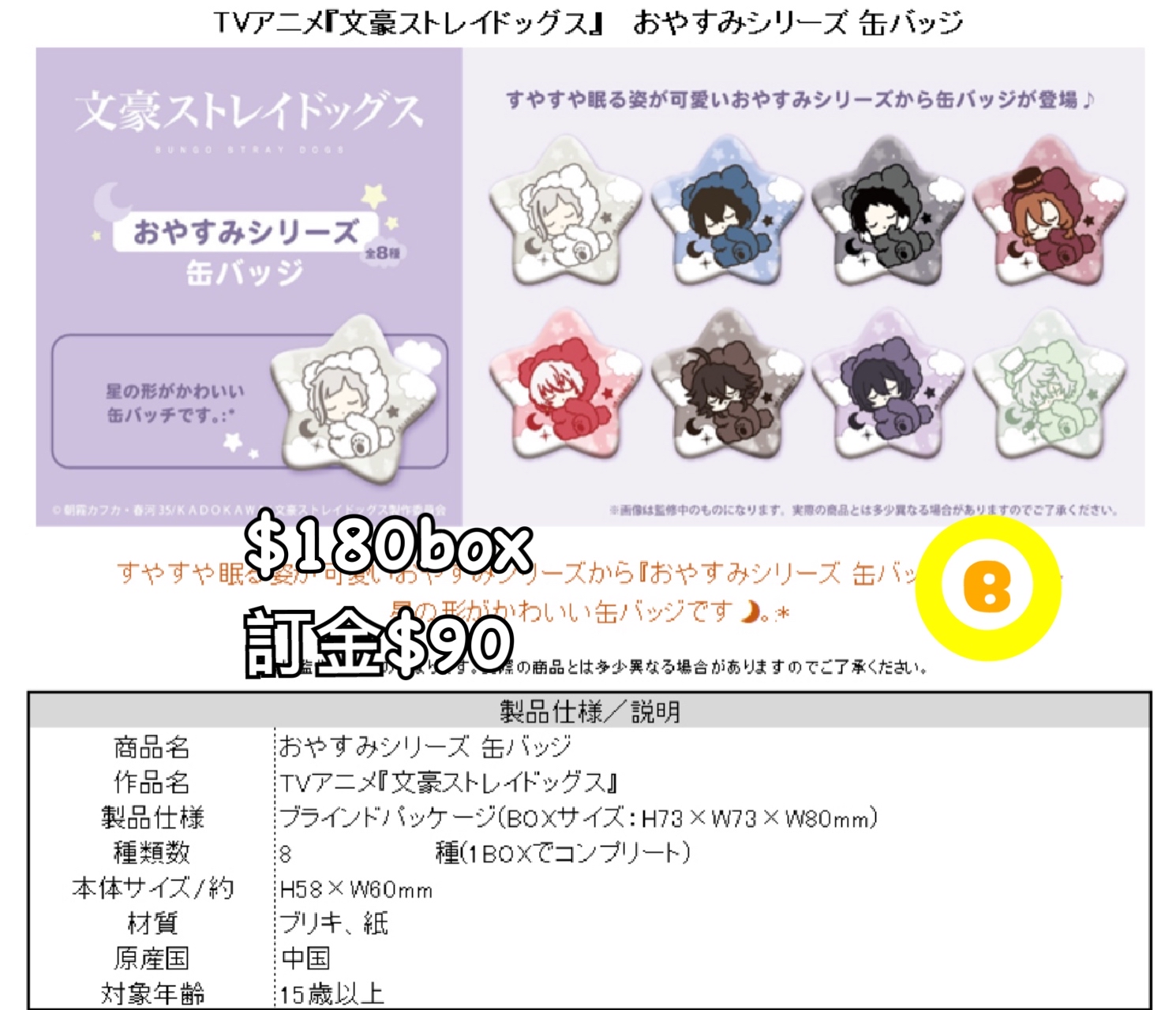 Preorder預訂1/2026年文豪野犬襟章原盒box2