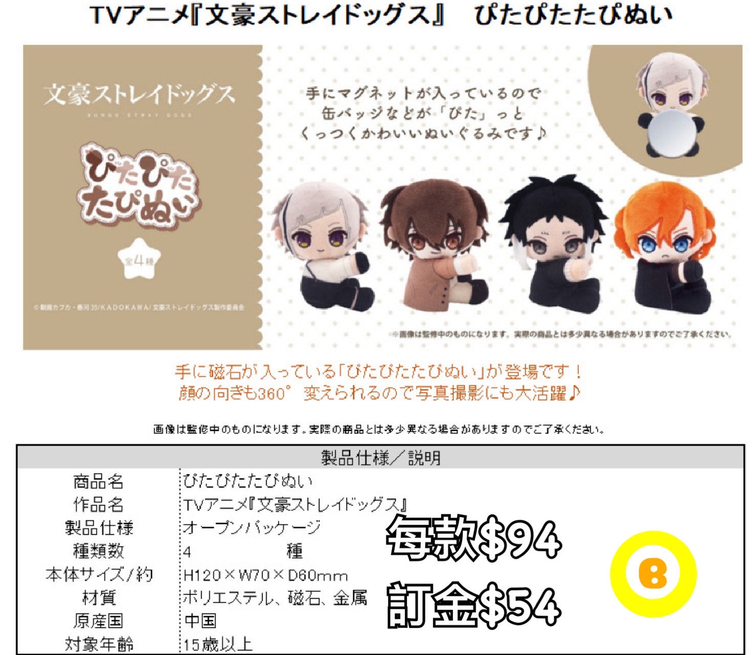 Preorder預訂1/2026年文豪野犬襟章原盒box1