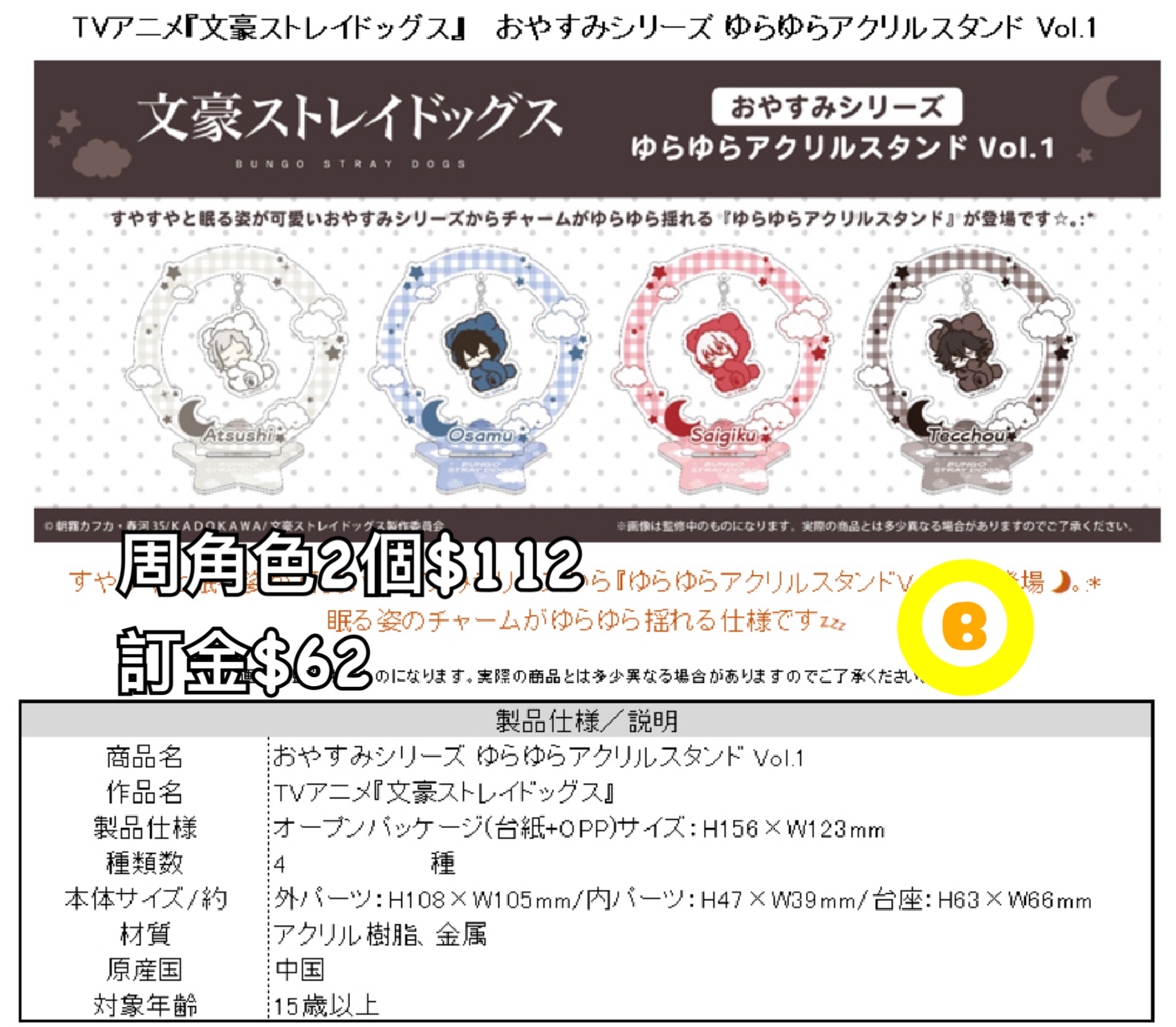 Preorder預訂1/2026年文豪野犬搖搖立牌vol1