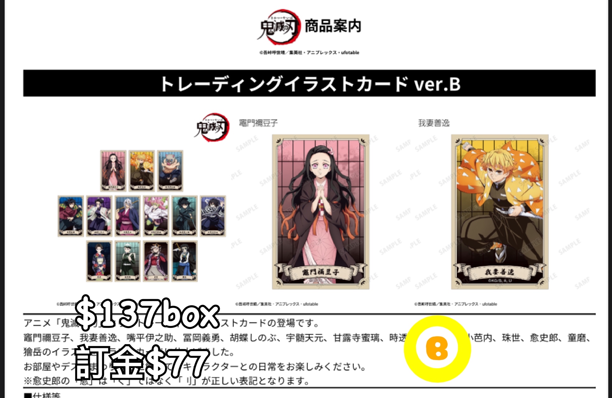 Preorder預訂1/2026年鬼滅之刃卡A原盒