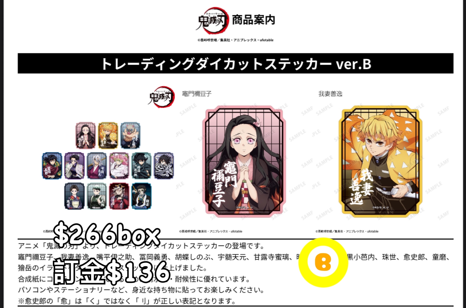 Preorder預訂1/2026年鬼滅之刃貼紙B原盒