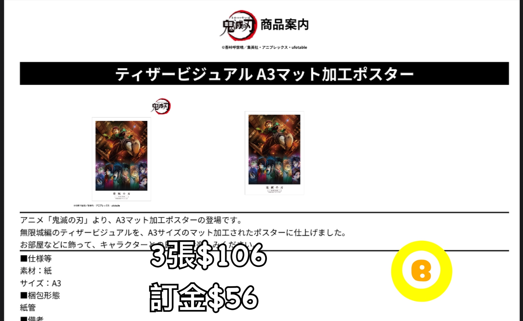 Preorder預訂1/2026年鬼滅之刃卡A3poster