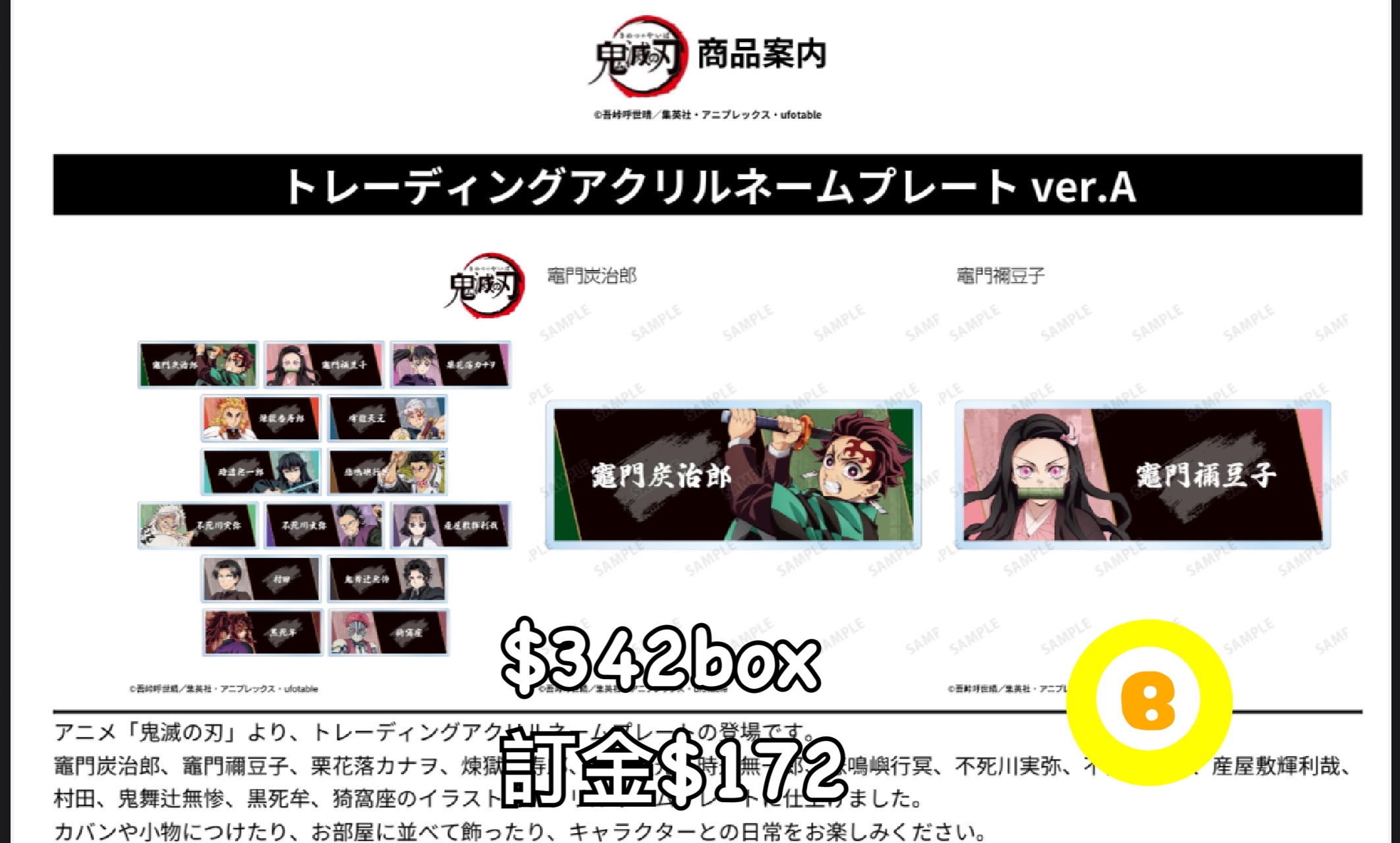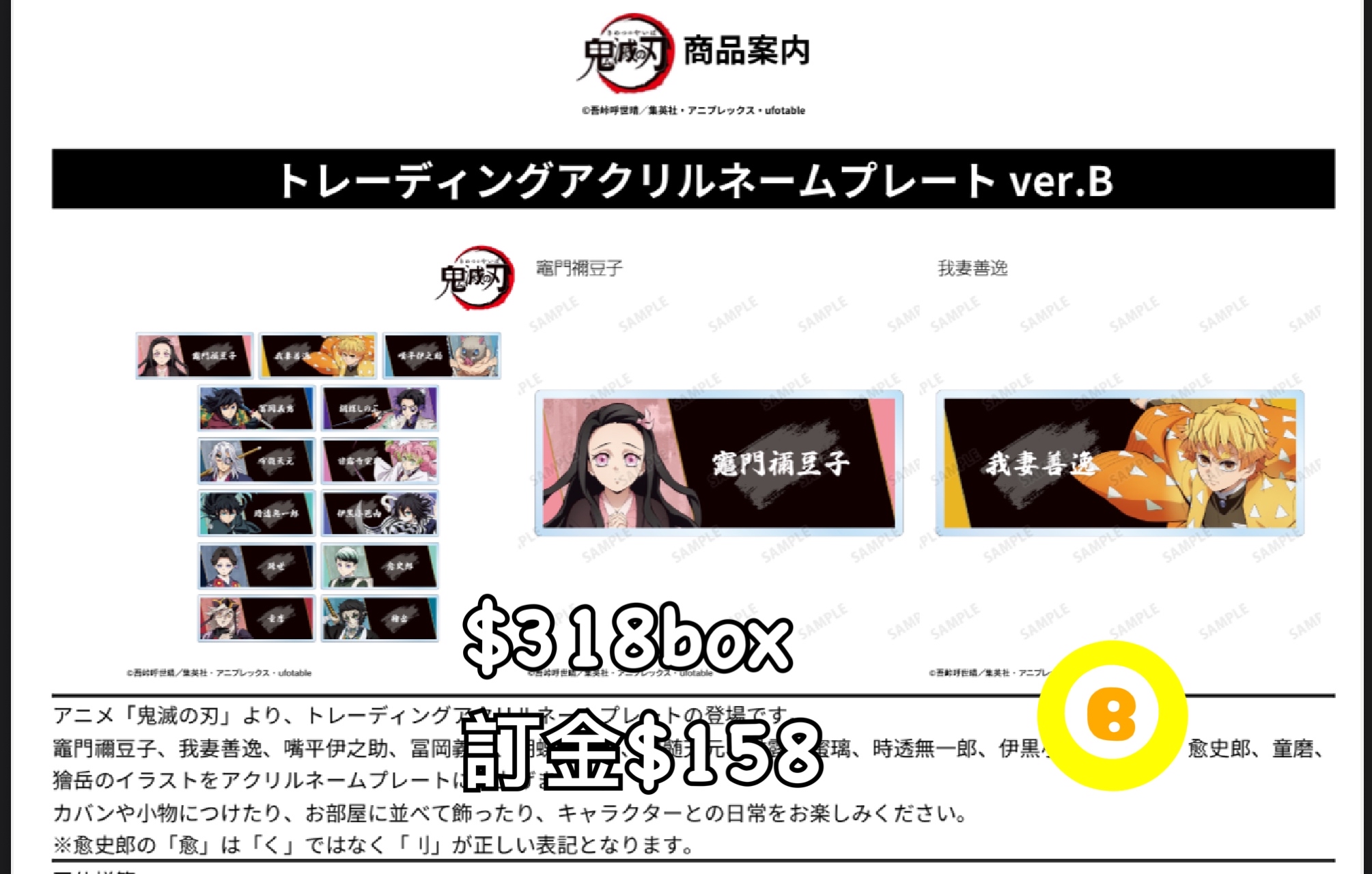 Preorder預訂1/2026年鬼滅之刃名牌B原盒