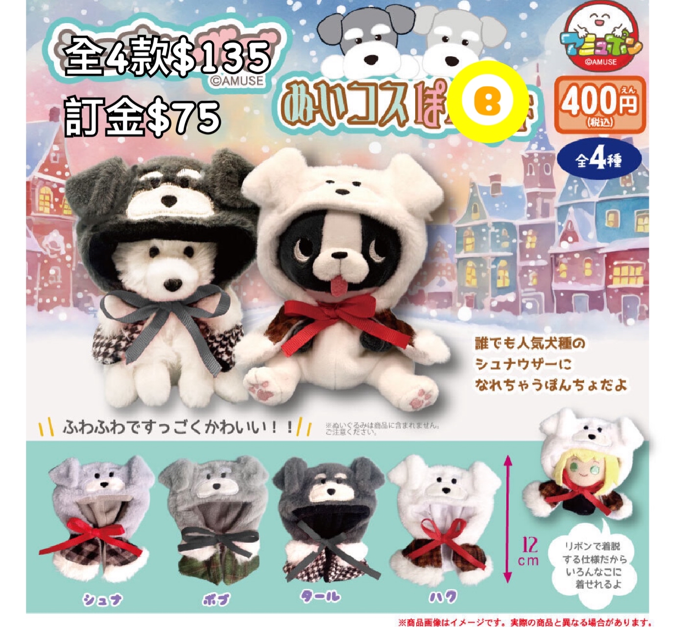12/2025年日本發貨 預1/2026年到貨 全4款$110 訂金$60 🌟可到網站訂購(請見關於) 貨到屯碼/旺角面交/旺角合作交收中心取貨/荔枝角門市/順豐到付/平郵/易寄取 💡大型盒類商品只限面交或順豐到付 1️⃣如選擇郵寄的客人請明白郵寄存在一定風險、寄失或因郵寄途中有損壞小店無法負責 2️⃣預訂產品就發售日期及發售內容或款式可能會與最初公佈時有不同 3️⃣訂購商品為日版(如行版會列明) 4️⃣請明白商品製造時可能會有瑕疵(如sad,甩油有花等等)小店沒法保證及更換 5️⃣不接受盒角有損而更換/退貨/退訂 6️⃣扭蛋基本不連蛋殼交收,如要請事先提出 7️⃣到貨期10日-1個月多,視乎商品數量及發售日期而有早/有遲(另受供應商貨期如分幾次送貨、指定月分配送、物流延誤而有所推遲,請諒解) 8️⃣已落訂金商品如因缺貨/日本砍單/派貨數目不足/分配不均而無法交付,訂金一律退回。另請不要以落單後可以取消的心態下單,因為除以上情況外,一律不接受退訂 9️⃣到貨後請盡量盡快回覆交收方法/面交日期時間,必須一個月內完成交收(包括支付郵費),逾期商品會回收,所有費用一律不退還 以上適用於網站及IG全部商品和預訂以及不限時間(即使舊有預訂或現貨也適用) 本店保留隨時更改或終止部分條款之權利並視客人在成功下單後已接受及理解當中條款