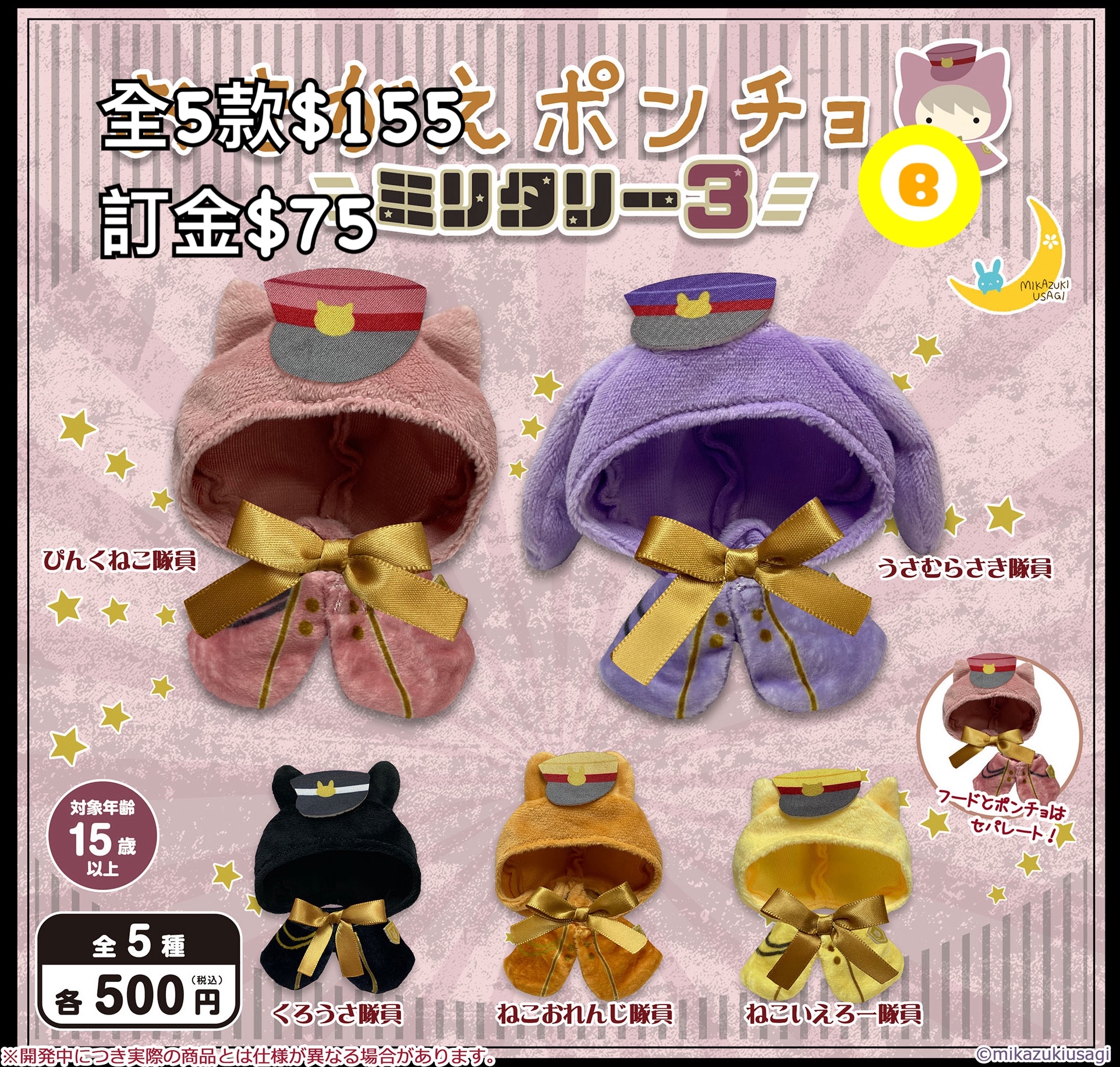 1/2026年日本發貨 預2/2026年到貨 全5款$155 訂金$75 🌟可到網站訂購(請見關於) 貨到屯碼/旺角面交/旺角合作交收中心取貨/荔枝角門市/順豐到付/平郵/易寄取 💡大型盒類商品只限面交或順豐到付 1️⃣如選擇郵寄的客人請明白郵寄存在一定風險、寄失或因郵寄途中有損壞小店無法負責 2️⃣預訂產品就發售日期及發售內容或款式可能會與最初公佈時有不同 3️⃣訂購商品為日版(如行版會列明) 4️⃣請明白商品製造時可能會有瑕疵(如sad,甩油有花等等)小店沒法保證及更換 5️⃣不接受盒角有損而更換/退貨/退訂 6️⃣扭蛋基本不連蛋殼交收,如要請事先提出 7️⃣到貨期10日-1個月多,視乎商品數量及發售日期而有早/有遲(另受供應商貨期如分幾次送貨、指定月分配送、物流延誤而有所推遲,請諒解) 8️⃣已落訂金商品如因缺貨/日本砍單/派貨數目不足/分配不均而無法交付,訂金一律退回。另請不要以落單後可以取消的心態下單,因為除以上情況外,一律不接受退訂 9️⃣到貨後請盡量盡快回覆交收方法/面交日期時間,必須一個月內完成交收(包括支付郵費),逾期商品會回收,所有費用一律不退還 以上適用於網站及IG全部商品和預訂以及不限時間(即使舊有預訂或現貨也適用) 本店保留隨時更改或終止部分條款之權利並視客人在成功下單後已接受及理解當中條款