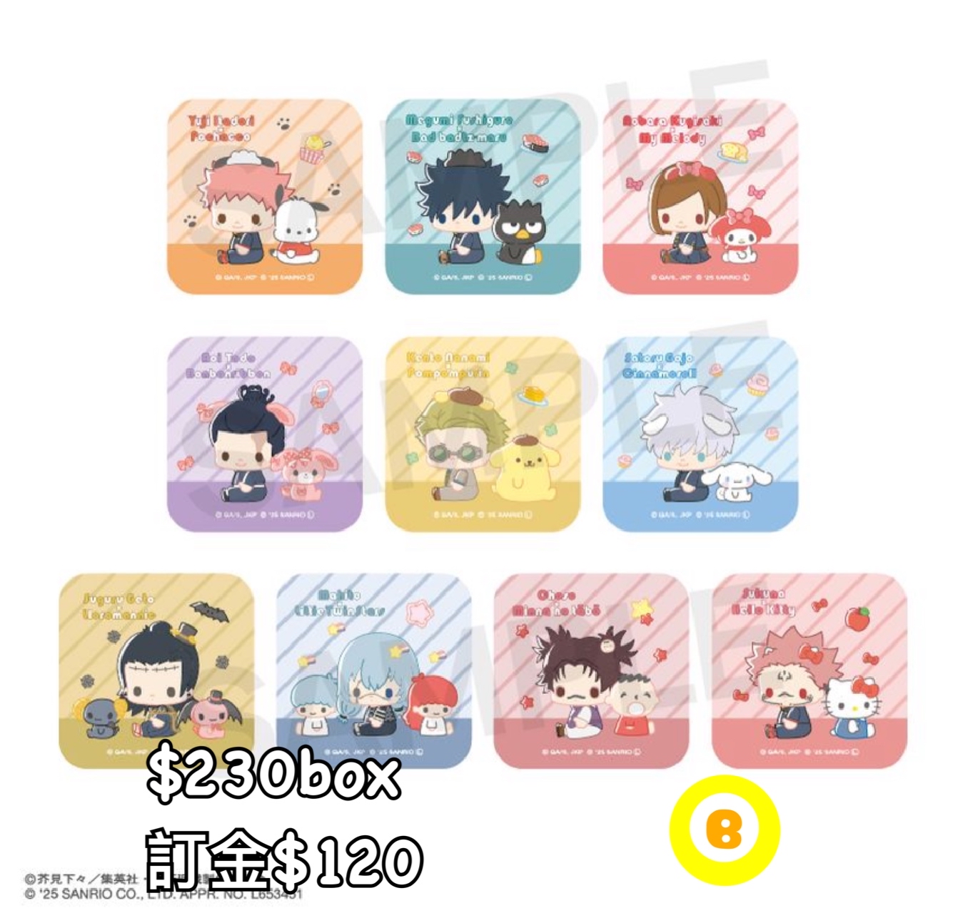 Preorder預訂1/2026年咒術迴戰x sanrio襟章原盒