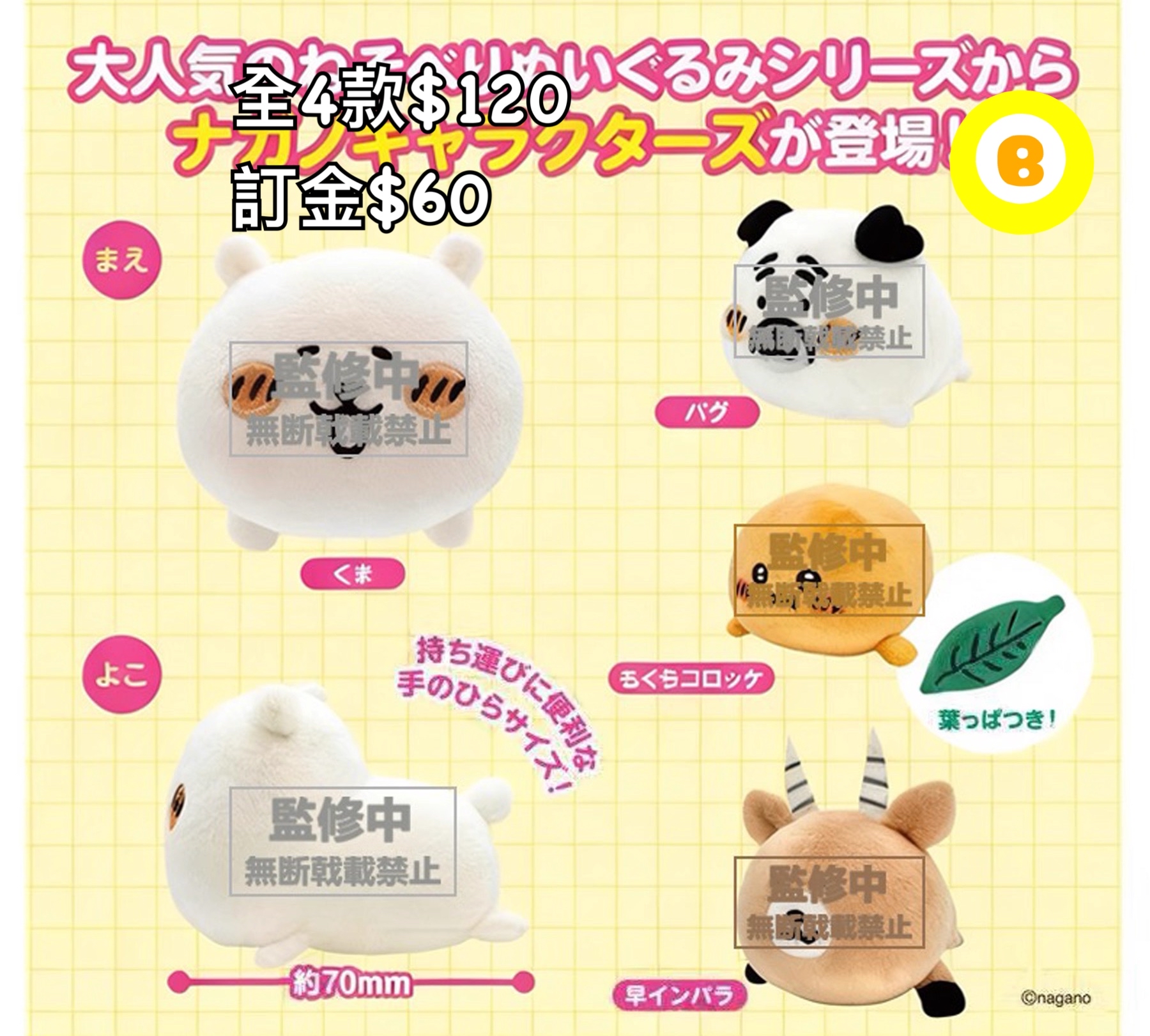 1/2026年日本發貨 預2/2026年到貨 全4款$120 訂金$60 🌟可到網站訂購(請見關於) 貨到屯碼/旺角面交/旺角合作交收中心取貨/荔枝角門市/順豐到付/平郵/易寄取 💡大型盒類商品只限面交或順豐到付 1️⃣如選擇郵寄的客人請明白郵寄存在一定風險、寄失或因郵寄途中有損壞小店無法負責 2️⃣預訂產品就發售日期及發售內容或款式可能會與最初公佈時有不同 3️⃣訂購商品為日版(如行版會列明) 4️⃣請明白商品製造時可能會有瑕疵(如sad,甩油有花等等)小店沒法保證及更換 5️⃣不接受盒角有損而更換/退貨/退訂 6️⃣扭蛋基本不連蛋殼交收,如要請事先提出 7️⃣到貨期10日-1個月多,視乎商品數量及發售日期而有早/有遲(另受供應商貨期如分幾次送貨、指定月分配送、物流延誤而有所推遲,請諒解) 8️⃣已落訂金商品如因缺貨/日本砍單/派貨數目不足/分配不均而無法交付,訂金一律退回。另請不要以落單後可以取消的心態下單,因為除以上情況外,一律不接受退訂 9️⃣到貨後請盡量盡快回覆交收方法/面交日期時間,必須一個月內完成交收(包括支付郵費),逾期商品會回收,所有費用一律不退還 以上適用於網站及IG全部商品和預訂以及不限時間(即使舊有預訂或現貨也適用) 本店保留隨時更改或終止部分條款之權利並視客人在成功下單後已接受及理解當中條款