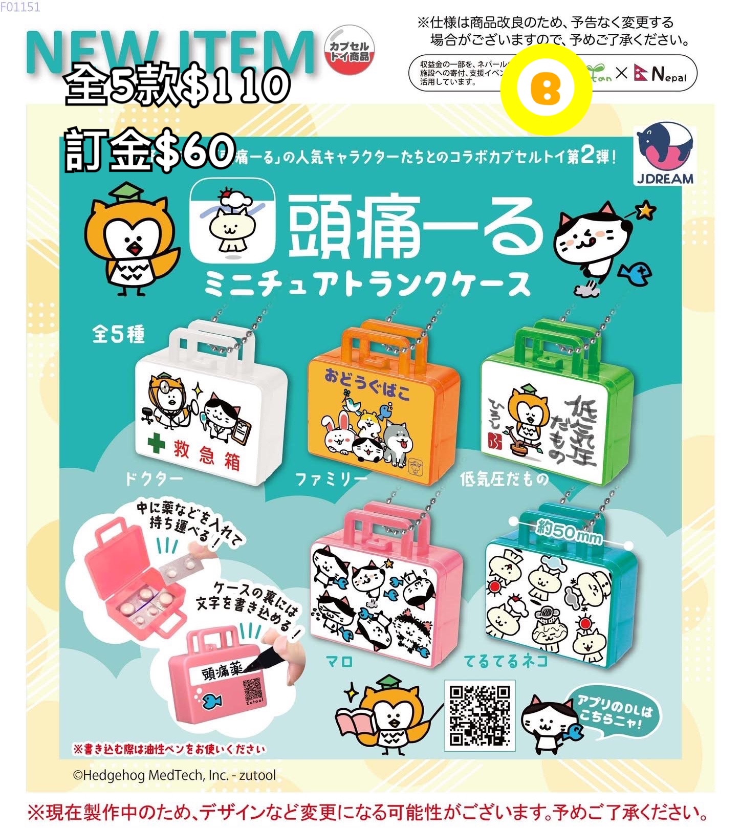 1/2026年日本發貨 預2/2026年到貨 全5款$110 訂金$60 🌟可到網站訂購(請見關於) 貨到屯碼/旺角面交/旺角合作交收中心取貨/荔枝角門市/順豐到付/平郵/易寄取 💡大型盒類商品只限面交或順豐到付 1️⃣如選擇郵寄的客人請明白郵寄存在一定風險、寄失或因郵寄途中有損壞小店無法負責 2️⃣預訂產品就發售日期及發售內容或款式可能會與最初公佈時有不同 3️⃣訂購商品為日版(如行版會列明) 4️⃣請明白商品製造時可能會有瑕疵(如sad,甩油有花等等)小店沒法保證及更換 5️⃣不接受盒角有損而更換/退貨/退訂 6️⃣扭蛋基本不連蛋殼交收,如要請事先提出 7️⃣到貨期10日-1個月多,視乎商品數量及發售日期而有早/有遲(另受供應商貨期如分幾次送貨、指定月分配送、物流延誤而有所推遲,請諒解) 8️⃣已落訂金商品如因缺貨/日本砍單/派貨數目不足/分配不均而無法交付,訂金一律退回。另請不要以落單後可以取消的心態下單,因為除以上情況外,一律不接受退訂 9️⃣到貨後請盡量盡快回覆交收方法/面交日期時間,必須一個月內完成交收(包括支付郵費),逾期商品會回收,所有費用一律不退還 以上適用於網站及IG全部商品和預訂以及不限時間(即使舊有預訂或現貨也適用) 本店保留隨時更改或終止部分條款之權利並視客人在成功下單後已接受及理解當中條款