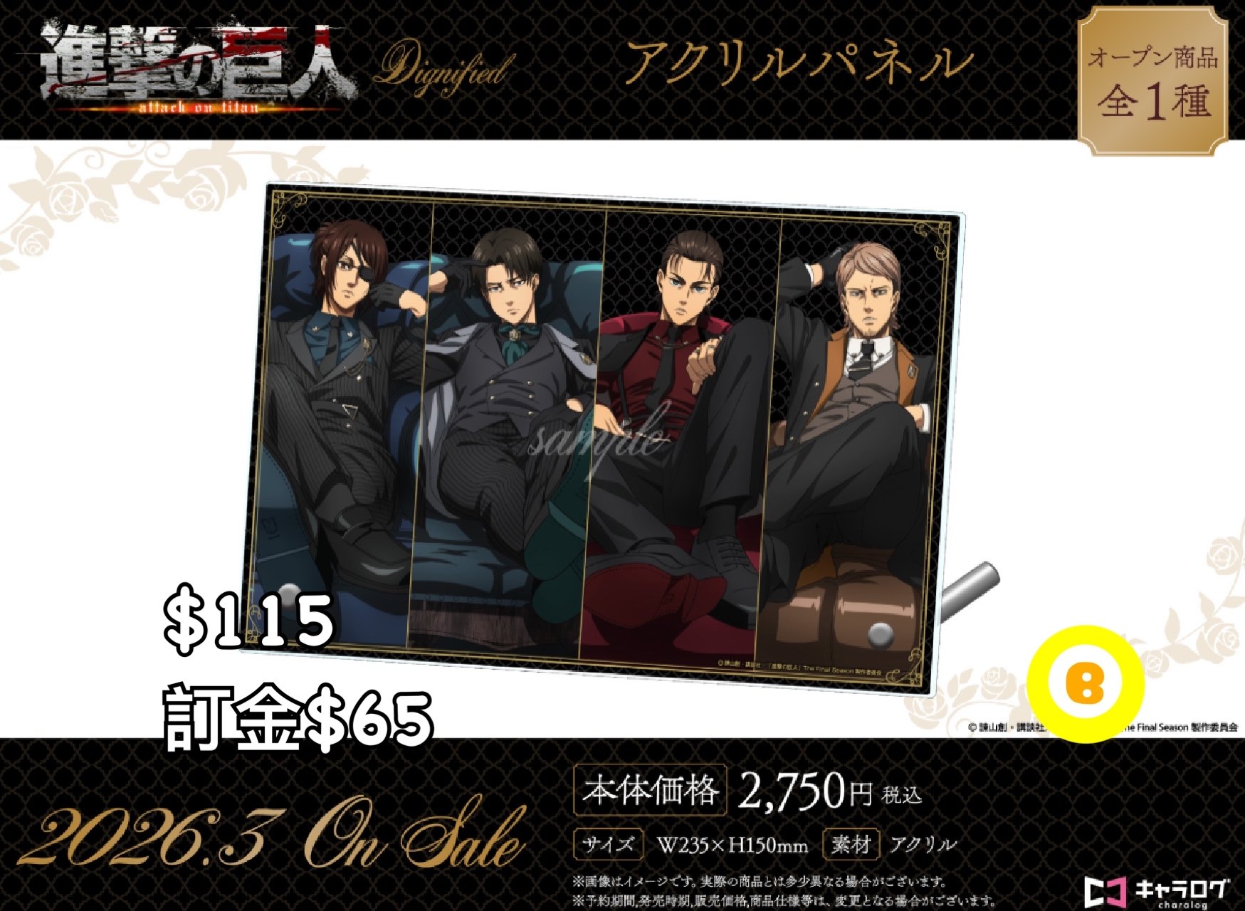 Preorder預訂1/2026年進擊的巨人立亞克力板(Dignified))