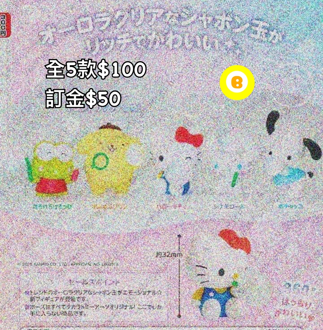 1/2026年日本發貨 預2/2026年到貨 全5款$100 訂金$50 🌟可到網站訂購(請見關於) 貨到屯碼/旺角面交/旺角合作交收中心取貨/荔枝角門市/順豐到付/平郵/易寄取 💡大型盒類商品只限面交或順豐到付 1️⃣如選擇郵寄的客人請明白郵寄存在一定風險、寄失或因郵寄途中有損壞小店無法負責 2️⃣預訂產品就發售日期及發售內容或款式可能會與最初公佈時有不同 3️⃣訂購商品為日版(如行版會列明) 4️⃣請明白商品製造時可能會有瑕疵(如sad,甩油有花等等)小店沒法保證及更換 5️⃣不接受盒角有損而更換/退貨/退訂 6️⃣扭蛋基本不連蛋殼交收,如要請事先提出 7️⃣到貨期10日-1個月多,視乎商品數量及發售日期而有早/有遲(另受供應商貨期如分幾次送貨、指定月分配送、物流延誤而有所推遲,請諒解) 8️⃣已落訂金商品如因缺貨/日本砍單/派貨數目不足/分配不均而無法交付,訂金一律退回。另請不要以落單後可以取消的心態下單,因為除以上情況外,一律不接受退訂 9️⃣到貨後請盡量盡快回覆交收方法/面交日期時間,必須一個月內完成交收(包括支付郵費),逾期商品會回收,所有費用一律不退還 以上適用於網站及IG全部商品和預訂以及不限時間(即使舊有預訂或現貨也適用) 本店保留隨時更改或終止部分條款之權利並視客人在成功下單後已接受及理解當中條款