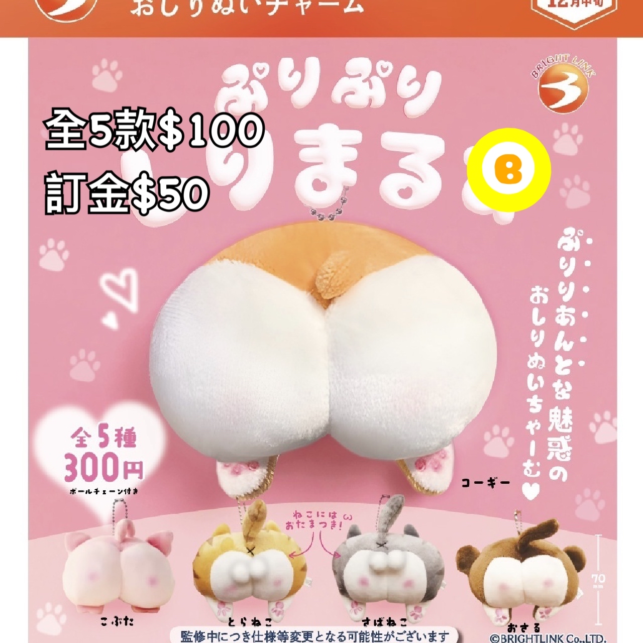 12/2025年日本發貨 預1/2026年到貨 全5款$100訂金$50 🌟可到網站訂購(請見關於) 貨到屯碼/旺角面交/旺角合作交收中心取貨/荔枝角門市/順豐到付/平郵/易寄取 💡大型盒類商品只限面交或順豐到付 1️⃣如選擇郵寄的客人請明白郵寄存在一定風險、寄失或因郵寄途中有損壞小店無法負責 2️⃣預訂產品就發售日期及發售內容或款式可能會與最初公佈時有不同 3️⃣訂購商品為日版(如行版會列明) 4️⃣請明白商品製造時可能會有瑕疵(如sad,甩油有花等等)小店沒法保證及更換 5️⃣不接受盒角有損而更換/退貨/退訂 6️⃣扭蛋基本不連蛋殼交收,如要請事先提出 7️⃣到貨期10日-1個月多,視乎商品數量及發售日期而有早/有遲(另受供應商貨期如分幾次送貨、指定月分配送、物流延誤而有所推遲,請諒解) 8️⃣已落訂金商品如因缺貨/日本砍單/派貨數目不足/分配不均而無法交付,訂金一律退回。另請不要以落單後可以取消的心態下單,因為除以上情況外,一律不接受退訂 9️⃣到貨後請盡量盡快回覆交收方法/面交日期時間,必須一個月內完成交收(包括支付郵費),逾期商品會回收,所有費用一律不退還 以上適用於網站及IG全部商品和預訂以及不限時間(即使舊有預訂或現貨也適用) 本店保留隨時更改或終止部分條款之權利並視客人在成功下單後已接受及理解當中條款