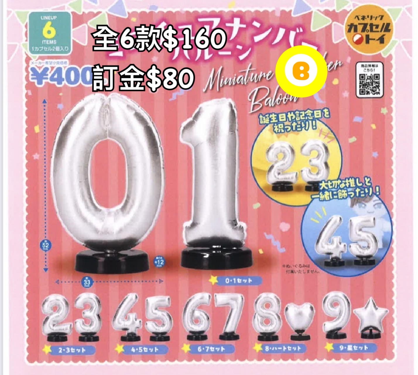 12/2025年日本發貨 預1/2026年到貨 全6款$160 訂金$80 🌟可到網站訂購(請見關於) 貨到屯碼/旺角面交/旺角合作交收中心取貨/荔枝角門市/順豐到付/平郵/易寄取 💡大型盒類商品只限面交或順豐到付 1️⃣如選擇郵寄的客人請明白郵寄存在一定風險、寄失或因郵寄途中有損壞小店無法負責 2️⃣預訂產品就發售日期及發售內容或款式可能會與最初公佈時有不同 3️⃣訂購商品為日版(如行版會列明) 4️⃣請明白商品製造時可能會有瑕疵(如sad,甩油有花等等)小店沒法保證及更換 5️⃣不接受盒角有損而更換/退貨/退訂 6️⃣扭蛋基本不連蛋殼交收,如要請事先提出 7️⃣到貨期10日-1個月多,視乎商品數量及發售日期而有早/有遲(另受供應商貨期如分幾次送貨、指定月分配送、物流延誤而有所推遲,請諒解) 8️⃣已落訂金商品如因缺貨/日本砍單/派貨數目不足/分配不均而無法交付,訂金一律退回。另請不要以落單後可以取消的心態下單,因為除以上情況外,一律不接受退訂 9️⃣到貨後請盡量盡快回覆交收方法/面交日期時間,必須一個月內完成交收(包括支付郵費),逾期商品會回收,所有費用一律不退還 以上適用於網站及IG全部商品和預訂以及不限時間(即使舊有預訂或現貨也適用) 本店保留隨時更改或終止部分條款之權利並視客人在成功下單後已接受及理解當中條款