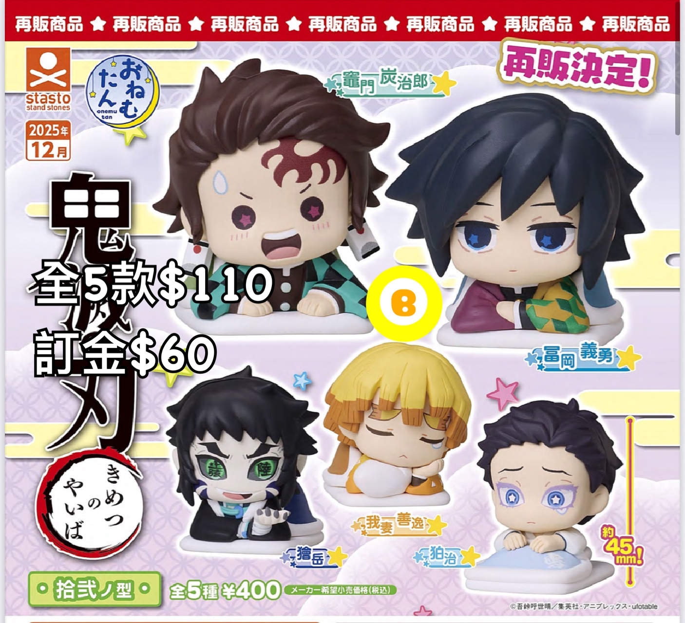 Preorder預訂12/2025年鬼滅之刃訓覺扭蛋