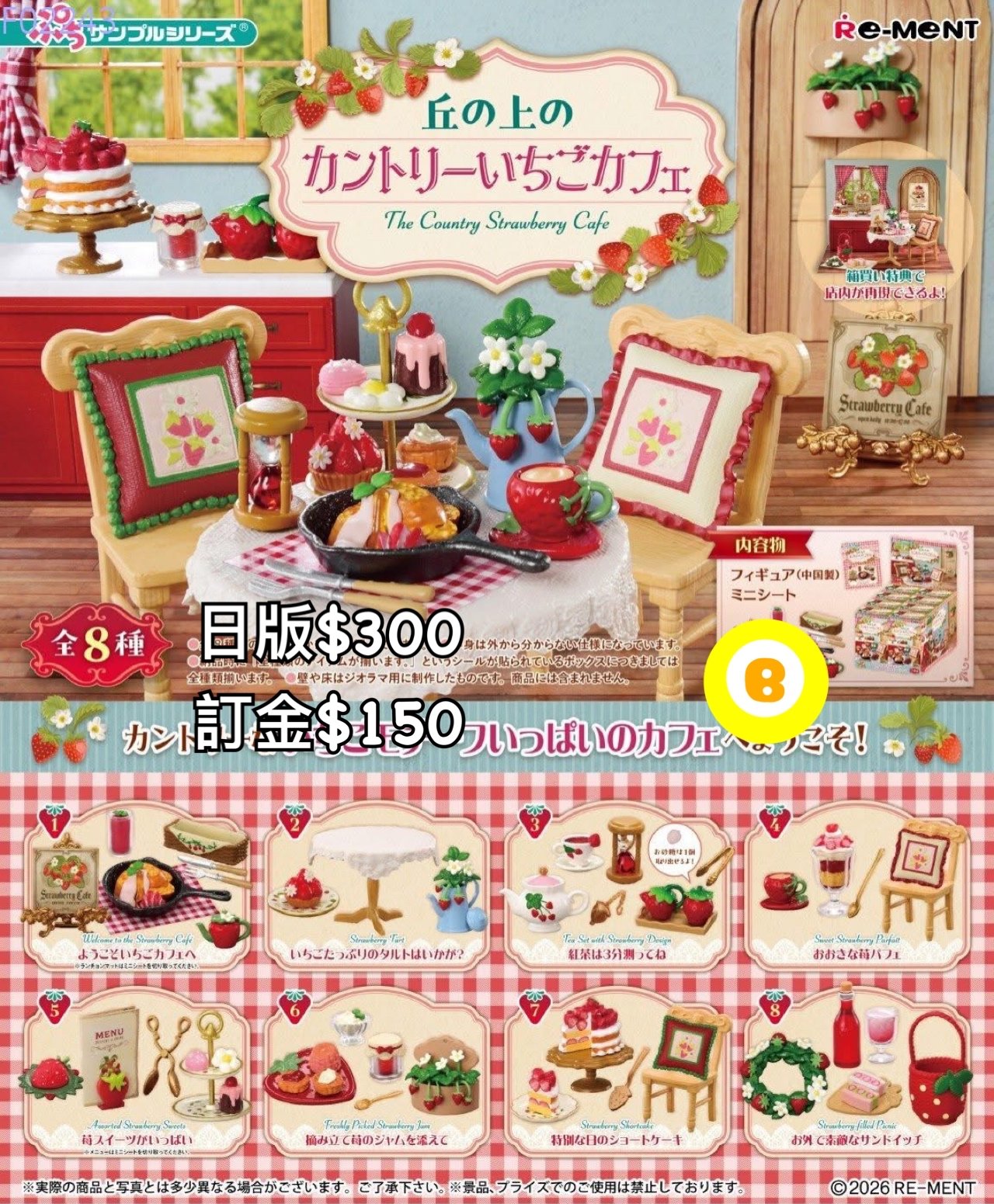 2/2026年日本發貨 預3/2026年到貨 原盒8包$300 訂金$150 🌟可到網站訂購(請見關於) 貨到屯碼/旺角面交/旺角合作交收中心取貨/荔枝角門市/順豐到付/平郵/易寄取 💡大型盒類商品只限面交或順豐到付 1️⃣如選擇郵寄的客人請明白郵寄存在一定風險、寄失或因郵寄途中有損壞小店無法負責 2️⃣預訂產品就發售日期及發售內容或款式可能會與最初公佈時有不同 3️⃣訂購商品為日版(如行版會列明) 4️⃣請明白商品製造時可能會有瑕疵(如sad,甩油有花等等)小店沒法保證及更換 5️⃣不接受盒角有損而更換/退貨/退訂 6️⃣扭蛋基本不連蛋殼交收,如要請事先提出 7️⃣到貨期10日-1個月多,視乎商品數量及發售日期而有早/有遲(另受供應商貨期如分幾次送貨、指定月分配送、物流延誤而有所推遲,請諒解) 8️⃣已落訂金商品如因缺貨/日本砍單/派貨數目不足/分配不均而無法交付,訂金一律退回。另請不要以落單後可以取消的心態下單,因為除以上情況外,一律不接受退訂 9️⃣到貨後請盡量盡快回覆交收方法/面交日期時間,必須一個月內完成交收(包括支付郵費),逾期商品會回收,所有費用一律不退還 以上適用於網站及IG全部商品和預訂以及不限時間(即使舊有預訂或現貨也適用) 本店保留隨時更改或終止部分條款之權利並視客人在成功下單後已接受及理解當中條款