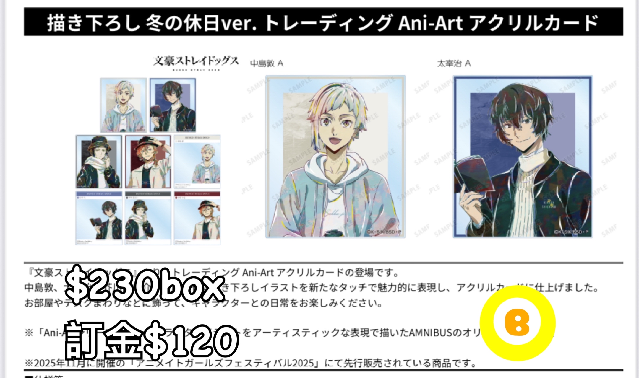 Preorder預訂2/2026年文豪野犬冬休日ver clear card原盒