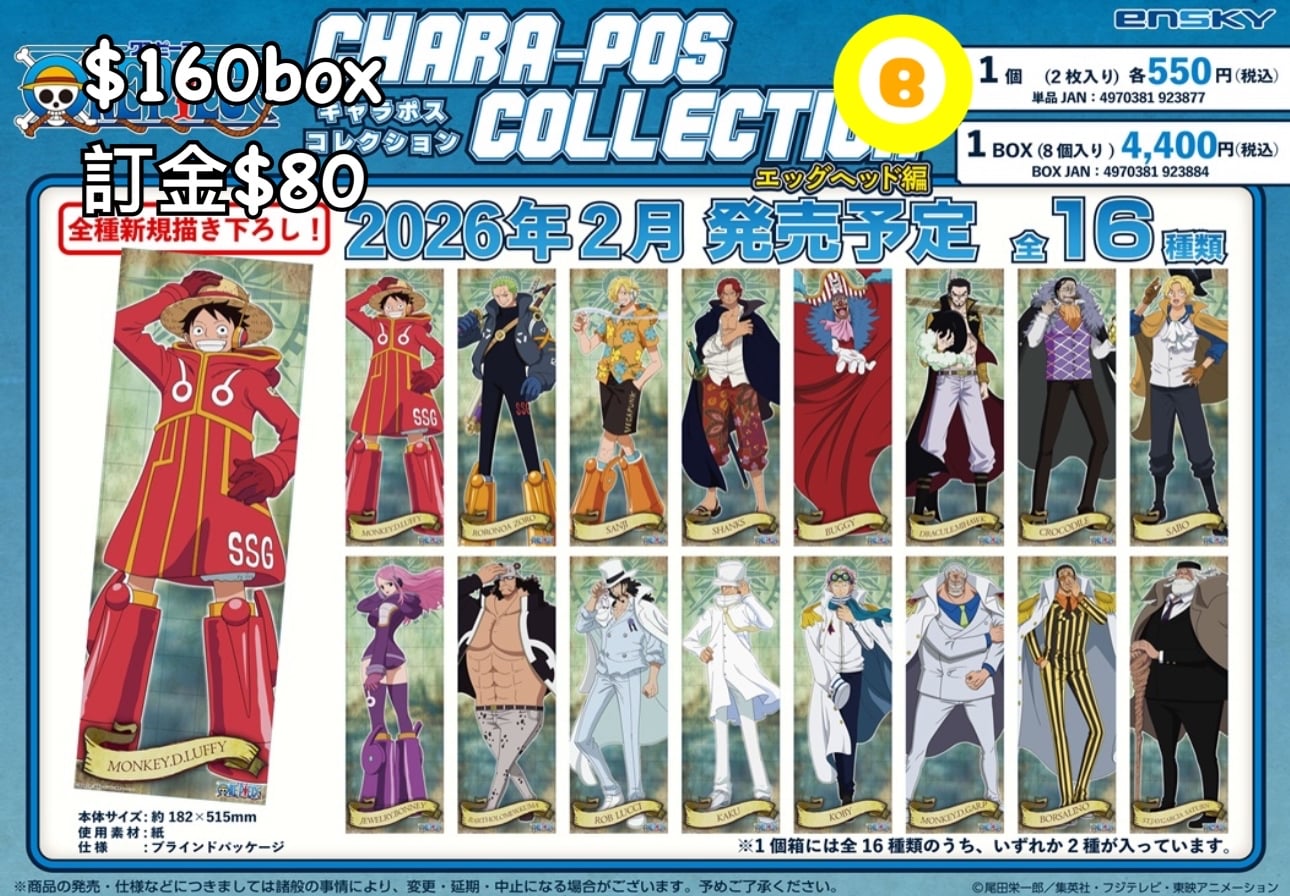 2/2026年日本發貨 預3/2026年到貨 原盒8包$160 訂金$80 🌟可到網站訂購(請見關於) 貨到屯碼/旺角面交/旺角合作交收中心取貨/荔枝角門市/順豐到付/平郵/易寄取 💡大型盒類商品只限面交或順豐到付 1️⃣如選擇郵寄的客人請明白郵寄存在一定風險、寄失或因郵寄途中有損壞小店無法負責 2️⃣預訂產品就發售日期及發售內容或款式可能會與最初公佈時有不同 3️⃣訂購商品為日版(如行版會列明) 4️⃣請明白商品製造時可能會有瑕疵(如sad,甩油有花等等)小店沒法保證及更換 5️⃣不接受盒角有損而更換/退貨/退訂 6️⃣扭蛋基本不連蛋殼交收,如要請事先提出 7️⃣到貨期10日-1個月多,視乎商品數量及發售日期而有早/有遲(另受供應商貨期如分幾次送貨、指定月分配送、物流延誤而有所推遲,請諒解) 8️⃣已落訂金商品如因缺貨/日本砍單/派貨數目不足/分配不均而無法交付,訂金一律退回。另請不要以落單後可以取消的心態下單,因為除以上情況外,一律不接受退訂 9️⃣到貨後請盡量盡快回覆交收方法/面交日期時間,必須一個月內完成交收(包括支付郵費),逾期商品會回收,所有費用一律不退還 以上適用於網站及IG全部商品和預訂以及不限時間(即使舊有預訂或現貨也適用) 本店保留隨時更改或終止部分條款之權利並視客人在成功下單後已接受及理解當中條款