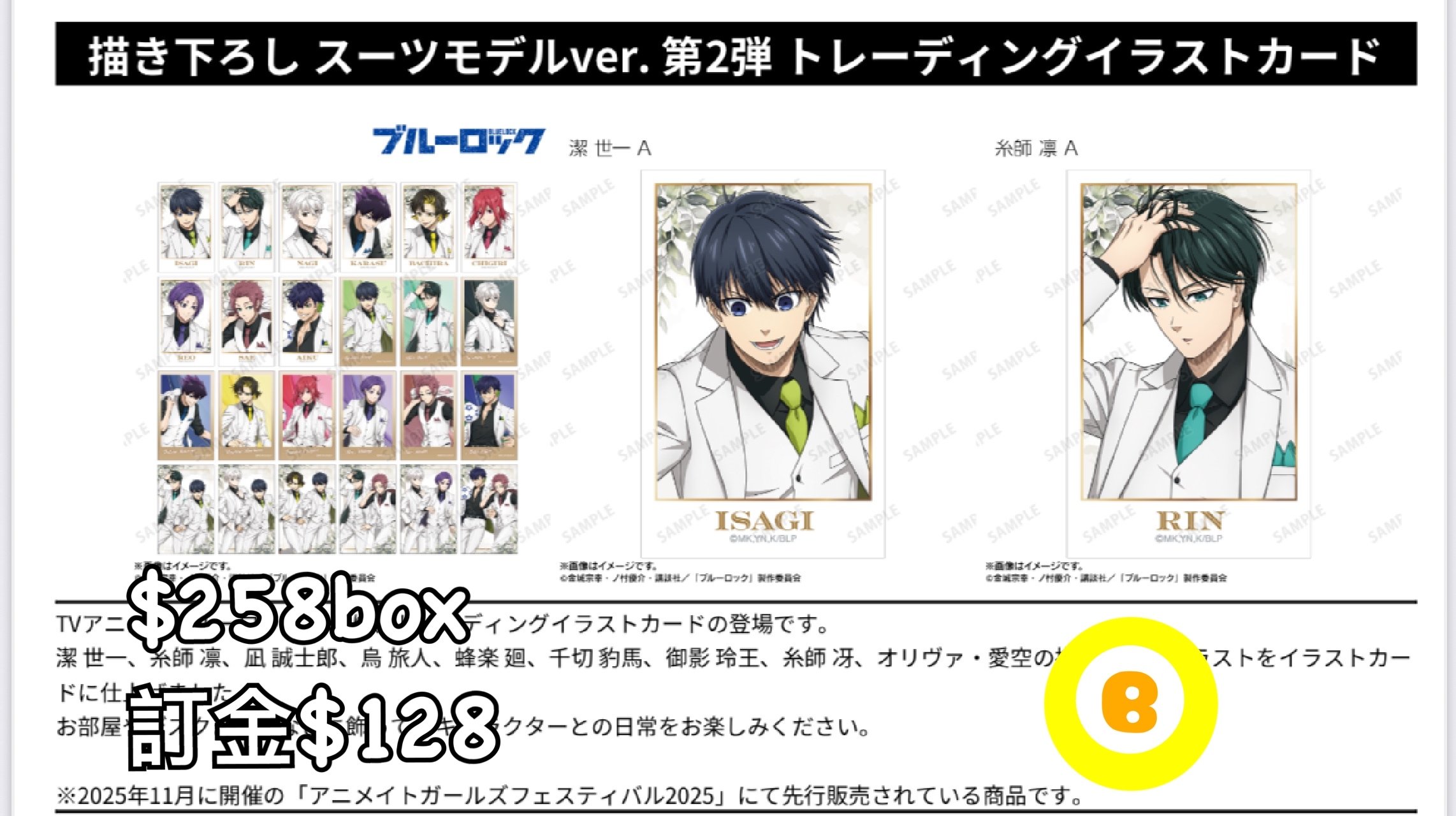 Preorder預訂2/2026年藍色監獄スーツモデル卡原盒