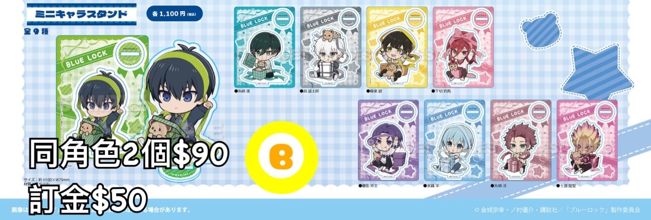 2/2026年日本發貨 預3/2026年到貨 同角色2個$90 訂金$50 🌟可到網站訂購(請見關於) 貨到屯碼/旺角面交/旺角合作交收中心取貨/荔枝角門市/順豐到付/平郵/易寄取 💡大型盒類商品只限面交或順豐到付 1️⃣如選擇郵寄的客人請明白郵寄存在一定風險、寄失或因郵寄途中有損壞小店無法負責 2️⃣預訂產品就發售日期及發售內容或款式可能會與最初公佈時有不同 3️⃣訂購商品為日版(如行版會列明) 4️⃣請明白商品製造時可能會有瑕疵(如sad,甩油有花等等)小店沒法保證及更換 5️⃣不接受盒角有損而更換/退貨/退訂 6️⃣扭蛋基本不連蛋殼交收,如要請事先提出 7️⃣到貨期10日-1個月多,視乎商品數量及發售日期而有早/有遲(另受供應商貨期如分幾次送貨、指定月分配送、物流延誤而有所推遲,請諒解) 8️⃣已落訂金商品如因缺貨/日本砍單/派貨數目不足/分配不均而無法交付,訂金一律退回。另請不要以落單後可以取消的心態下單,因為除以上情況外,一律不接受退訂 9️⃣到貨後請盡量盡快回覆交收方法/面交日期時間,必須一個月內完成交收(包括支付郵費),逾期商品會回收,所有費用一律不退還 以上適用於網站及IG全部商品和預訂以及不限時間(即使舊有預訂或現貨也適用) 本店保留隨時更改或終止部分條款之權利並視客人在成功下單後已接受及理解當中條款戈