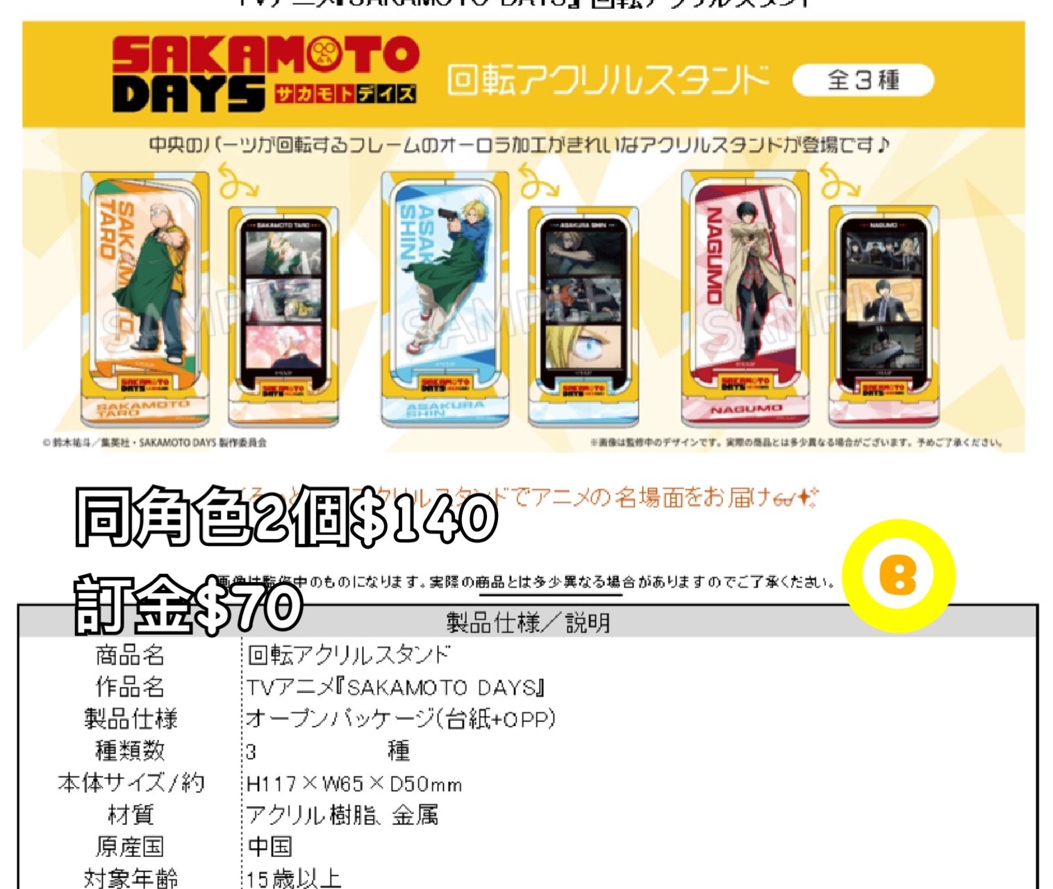 Preorder預訂2/2026年sakamoto day回轉立牌