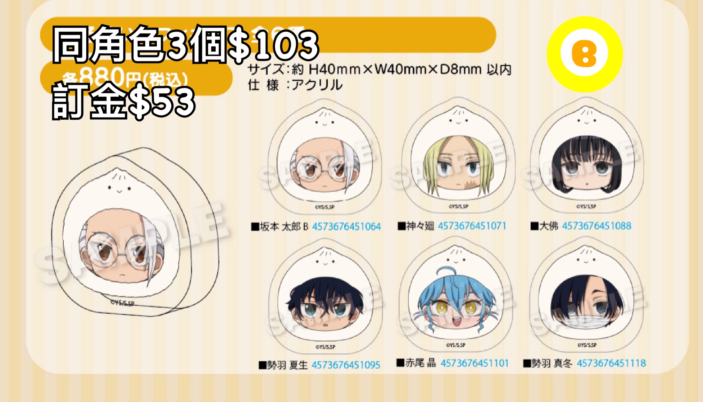 2/2026年日本發貨 預3/2026年到貨 同角色2個$103 訂金$53 🌟可到網站訂購(請見關於) 貨到屯碼/旺角面交/旺角合作交收中心取貨/荔枝角門市/順豐到付/平郵/易寄取 💡大型盒類商品只限面交或順豐到付 1️⃣如選擇郵寄的客人請明白郵寄存在一定風險、寄失或因郵寄途中有損壞小店無法負責 2️⃣預訂產品就發售日期及發售內容或款式可能會與最初公佈時有不同 3️⃣訂購商品為日版(如行版會列明) 4️⃣請明白商品製造時可能會有瑕疵(如sad,甩油有花等等)小店沒法保證及更換 5️⃣不接受盒角有損而更換/退貨/退訂 6️⃣扭蛋基本不連蛋殼交收,如要請事先提出 7️⃣到貨期10日-1個月多,視乎商品數量及發售日期而有早/有遲(另受供應商貨期如分幾次送貨、指定月分配送、物流延誤而有所推遲,請諒解) 8️⃣已落訂金商品如因缺貨/日本砍單/派貨數目不足/分配不均而無法交付,訂金一律退回。另請不要以落單後可以取消的心態下單,因為除以上情況外,一律不接受退訂 9️⃣到貨後請盡量盡快回覆交收方法/面交日期時間,必須一個月內完成交收(包括支付郵費),逾期商品會回收,所有費用一律不退還 以上適用於網站及IG全部商品和預訂以及不限時間(即使舊有預訂或現貨也適用) 本店保留隨時更改或終止部分條款之權利並視客人在成功下單後已接受及理解當中條款