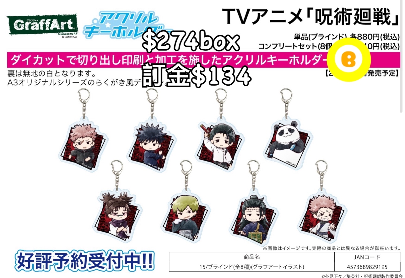 Preorder預訂3/2026年咒術迴戰匙扣原盒