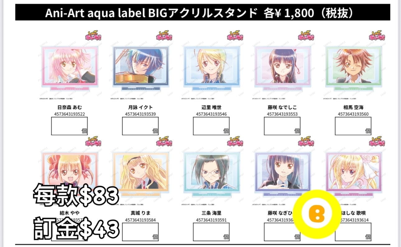 3/2026年日本發貨 預4/2026年到貨 每款$83 訂金$43 🌟可到網站訂購(請見關於) 貨到屯碼/旺角面交/旺角合作交收中心取貨/荔枝角門市/順豐到付/平郵/易寄取 💡大型盒類商品只限面交或順豐到付 1️⃣如選擇郵寄的客人請明白郵寄存在一定風險、寄失或因郵寄途中有損壞小店無法負責 2️⃣預訂產品就發售日期及發售內容或款式可能會與最初公佈時有不同 3️⃣訂購商品為日版(如行版會列明) 4️⃣請明白商品製造時可能會有瑕疵(如sad,甩油有花等等)小店沒法保證及更換 5️⃣不接受盒角有損而更換/退貨/退訂 6️⃣扭蛋基本不連蛋殼交收,如要請事先提出 7️⃣到貨期10日-1個月多,視乎商品數量及發售日期而有早/有遲(另受供應商貨期如分幾次送貨、指定月分配送、物流延誤而有所推遲,請諒解) 8️⃣已落訂金商品如因缺貨/日本砍單/派貨數目不足/分配不均而無法交付,訂金一律退回。另請不要以落單後可以取消的心態下單,因為除以上情況外,一律不接受退訂 9️⃣到貨後請盡量盡快回覆交收方法/面交日期時間,必須一個月內完成交收(包括支付郵費),逾期商品會回收,所有費用一律不退還 以上適用於網站及IG全部商品和預訂以及不限時間(即使舊有預訂或現貨也適用) 本店保留隨時更改或終止部分條款之權利並視客人在成功下單後已接受及理解當中條款