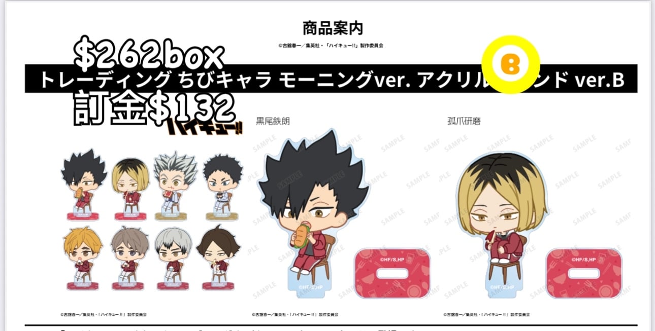 3/2026年日本發貨 預4/2026年到貨 原盒8包$262訂金$132 🌟可到網站訂購(請見關於) 貨到屯碼/旺角面交/旺角合作交收中心取貨/荔枝角門市/順豐到付/平郵/易寄取 💡大型盒類商品只限面交或順豐到付 1️⃣如選擇郵寄的客人請明白郵寄存在一定風險、寄失或因郵寄途中有損壞小店無法負責 2️⃣預訂產品就發售日期及發售內容或款式可能會與最初公佈時有不同 3️⃣訂購商品為日版(如行版會列明) 4️⃣請明白商品製造時可能會有瑕疵(如sad,甩油有花等等)小店沒法保證及更換 5️⃣不接受盒角有損而更換/退貨/退訂 6️⃣扭蛋基本不連蛋殼交收,如要請事先提出 7️⃣到貨期10日-1個月多,視乎商品數量及發售日期而有早/有遲(另受供應商貨期如分幾次送貨、指定月分配送、物流延誤而有所推遲,請諒解) 8️⃣已落訂金商品如因缺貨/日本砍單/派貨數目不足/分配不均而無法交付,訂金一律退回。(供應商絕大機會安排出貨時才會通知以上情況)另請不要以落單後可以取消的心態下單,因為除以上情況外,一律不接受退訂 9️⃣到貨後請盡量盡快回覆交收方法/面交日期時間,除仲有其他商品未到,最好一個月內完成交收(包括支付郵費),逾期商品會回收 所有費用一律不退還