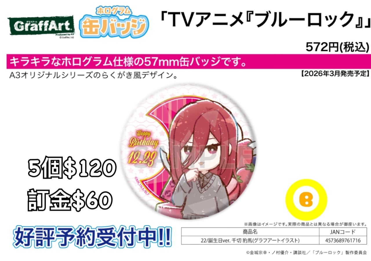 Preorder預訂3/2026年藍色監獄千切生日襟章