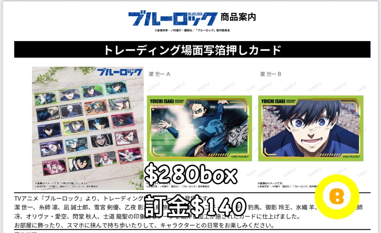 3/2026年日本發貨 預4/2026年到貨 原盒20包$280 訂金$140 🌟可到網站訂購(請見關於) 貨到屯碼/旺角面交/旺角合作交收中心取貨/荔枝角門市/順豐到付/平郵/易寄取 💡大型盒類商品只限面交或順豐到付 1️⃣如選擇郵寄的客人請明白郵寄存在一定風險、寄失或因郵寄途中有損壞小店無法負責 2️⃣預訂產品就發售日期及發售內容或款式可能會與最初公佈時有不同 3️⃣訂購商品為日版(如行版會列明) 4️⃣請明白商品製造時可能會有瑕疵(如sad,甩油有花等等)小店沒法保證及更換 5️⃣不接受盒角有損而更換/退貨/退訂 6️⃣扭蛋基本不連蛋殼交收,如要請事先提出 7️⃣到貨期10日-1個月多,視乎商品數量及發售日期而有早/有遲(另受供應商貨期如分幾次送貨、指定月分配送、物流延誤而有所推遲,請諒解) 8️⃣已落訂金商品如因缺貨/日本砍單/派貨數目不足/分配不均而無法交付,訂金一律退回。另請不要以落單後可以取消的心態下單,因為除以上情況外,一律不接受退訂 9️⃣到貨後請盡量盡快回覆交收方法/面交日期時間,除仲有其他商品未到,最好一個月內完成交收(包括支付郵費),逾期商品會回收 所有費用一律不退還