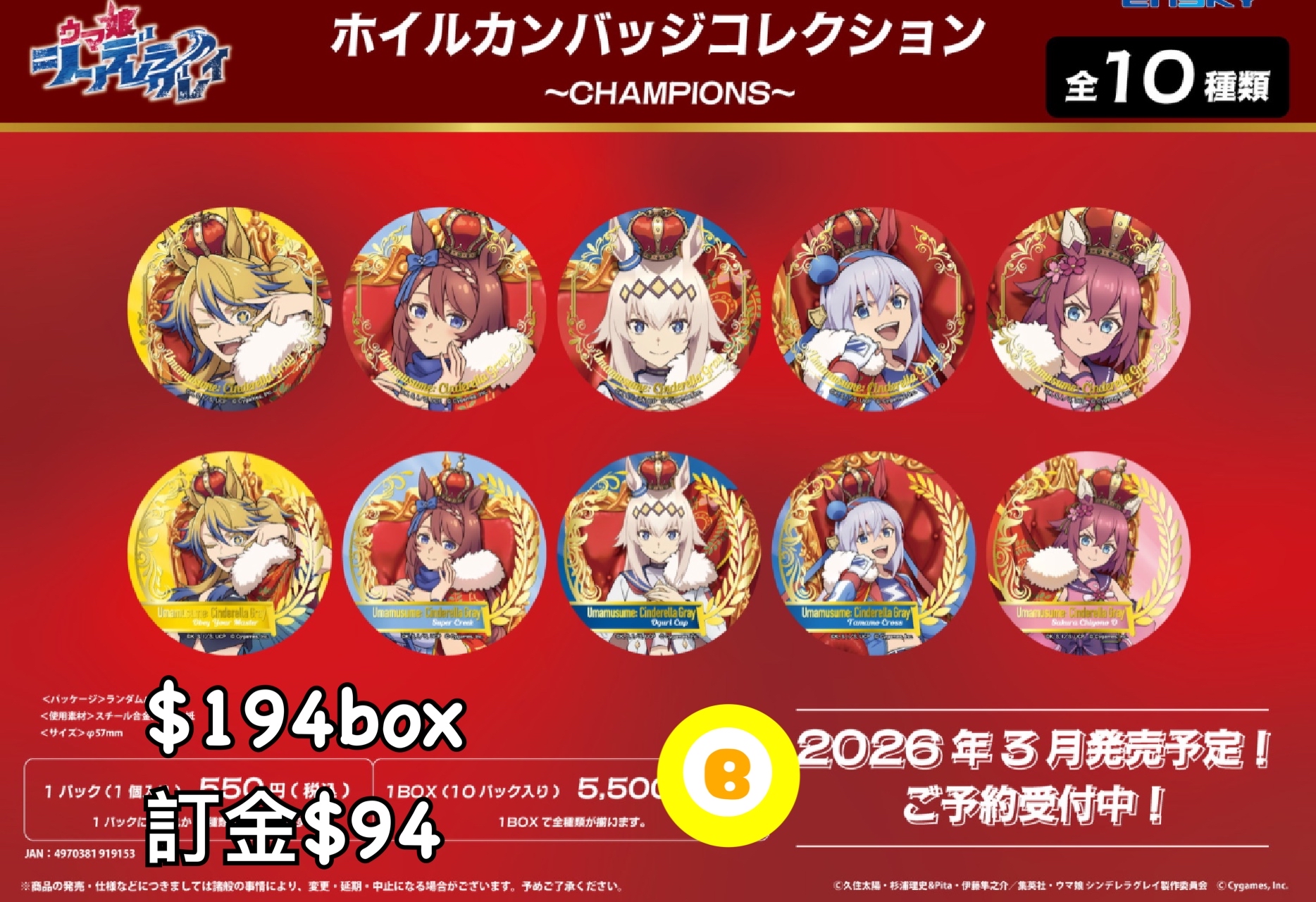 Preorder預訂3/2026年賽馬娘襟章原盒