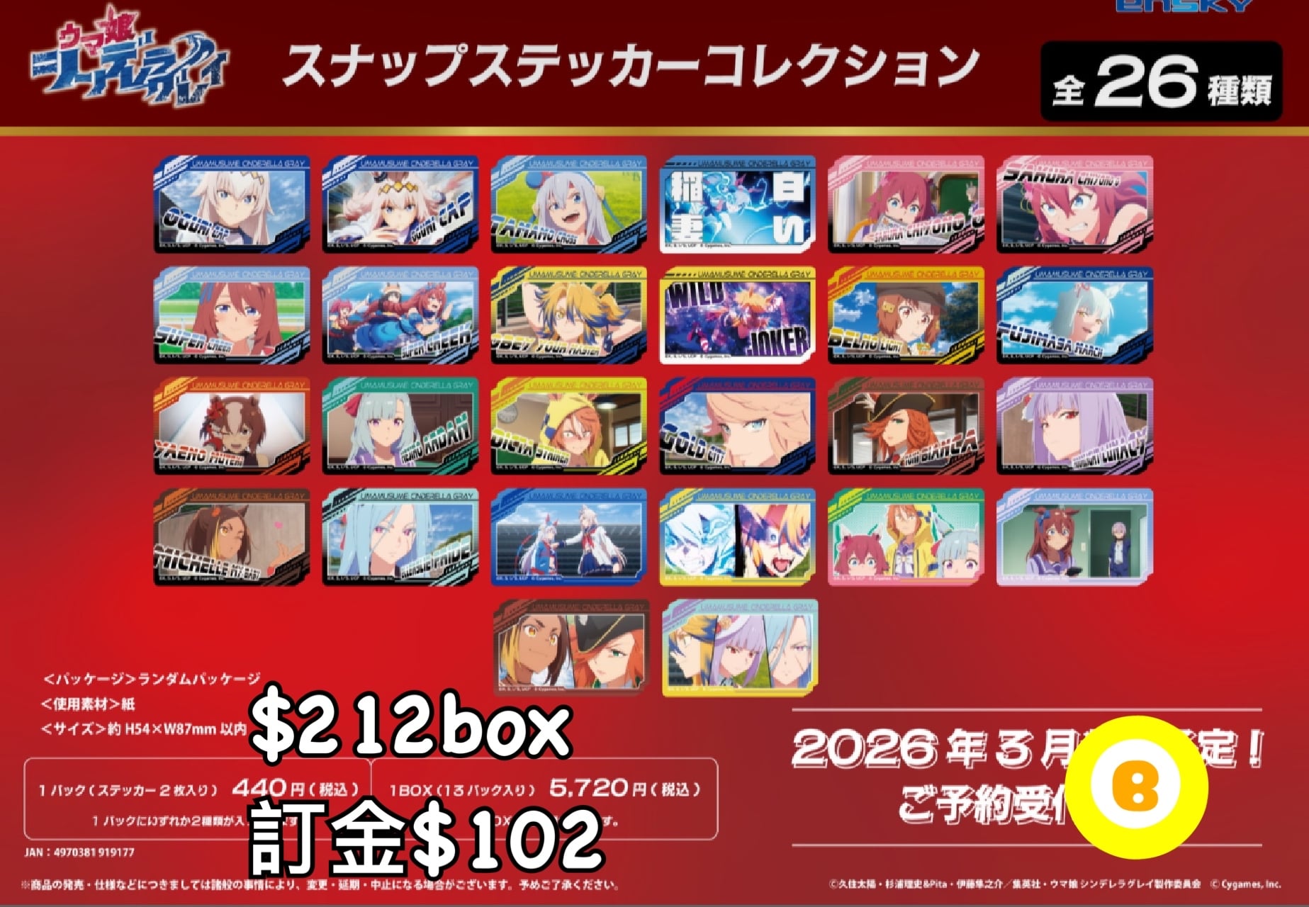 Preorder預訂3/2026年賽馬娘貼紙原盒
