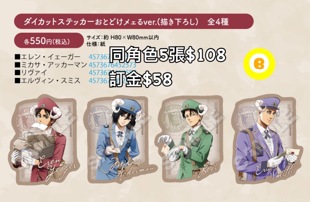 Preorder預訂3/2026年進擊的巨人おとどけメェる貼紙