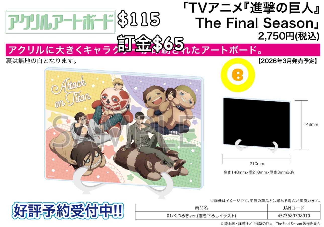 Preorder預訂3/2026年進擊的巨人亞克力板