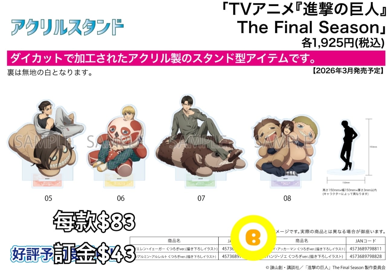 3/2026年日本發貨 預4/2026年到貨 每款$83 訂金$43 🌟可到網站訂購(請見關於) 貨到屯碼/旺角面交/旺角合作交收中心取貨/荔枝角門市/順豐到付/平郵/易寄取 💡大型盒類商品只限面交或順豐到付 1️⃣如選擇郵寄的客人請明白郵寄存在一定風險、寄失或因郵寄途中有損壞小店無法負責 2️⃣預訂產品就發售日期及發售內容或款式可能會與最初公佈時有不同 3️⃣訂購商品為日版(如行版會列明) 4️⃣請明白商品製造時可能會有瑕疵(如sad,甩油有花等等)小店沒法保證及更換 5️⃣不接受盒角有損而更換/退貨/退訂 6️⃣扭蛋基本不連蛋殼交收,如要請事先提出 7️⃣到貨期10日-1個月多,視乎商品數量及發售日期而有早/有遲(另受供應商貨期如分幾次送貨、指定月分配送、物流延誤而有所推遲,請諒解) 8️⃣已落訂金商品如因缺貨/日本砍單/派貨數目不足/分配不均而無法交付,訂金一律退回。另請不要以落單後可以取消的心態下單,因為除以上情況外,一律不接受退訂 9️⃣到貨後請盡量盡快回覆交收方法/面交日期時間,除仲有其他商品未到,最好一個月內完成交收(包括支付郵費),逾期商品會回收 所有費用一律不退還 戈