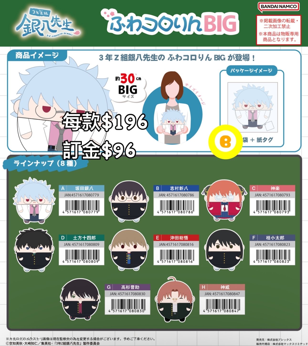 Preorder預訂3/2026年銀魂圓波波公仔-Big size