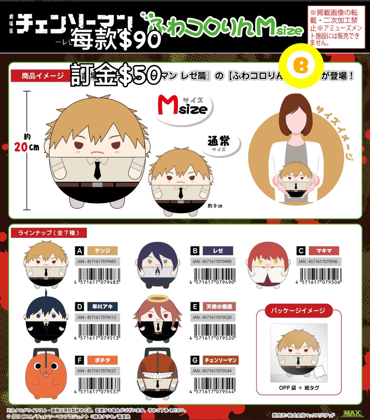 Preorder預訂3/2026年鏈鋸人圓波波公仔-m size