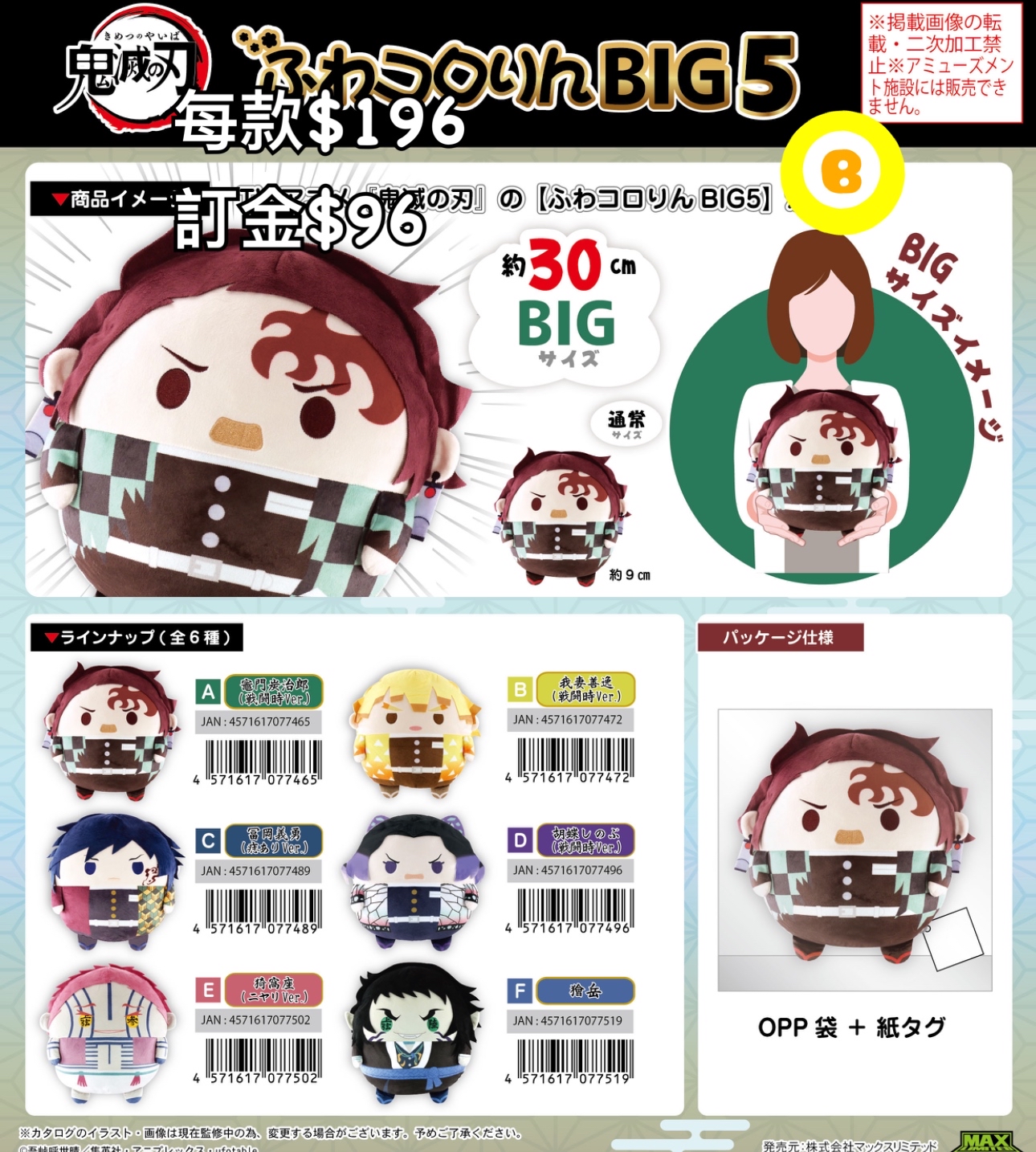 Preorder預訂3/2026年鬼滅之刃圓波波公仔-Big size