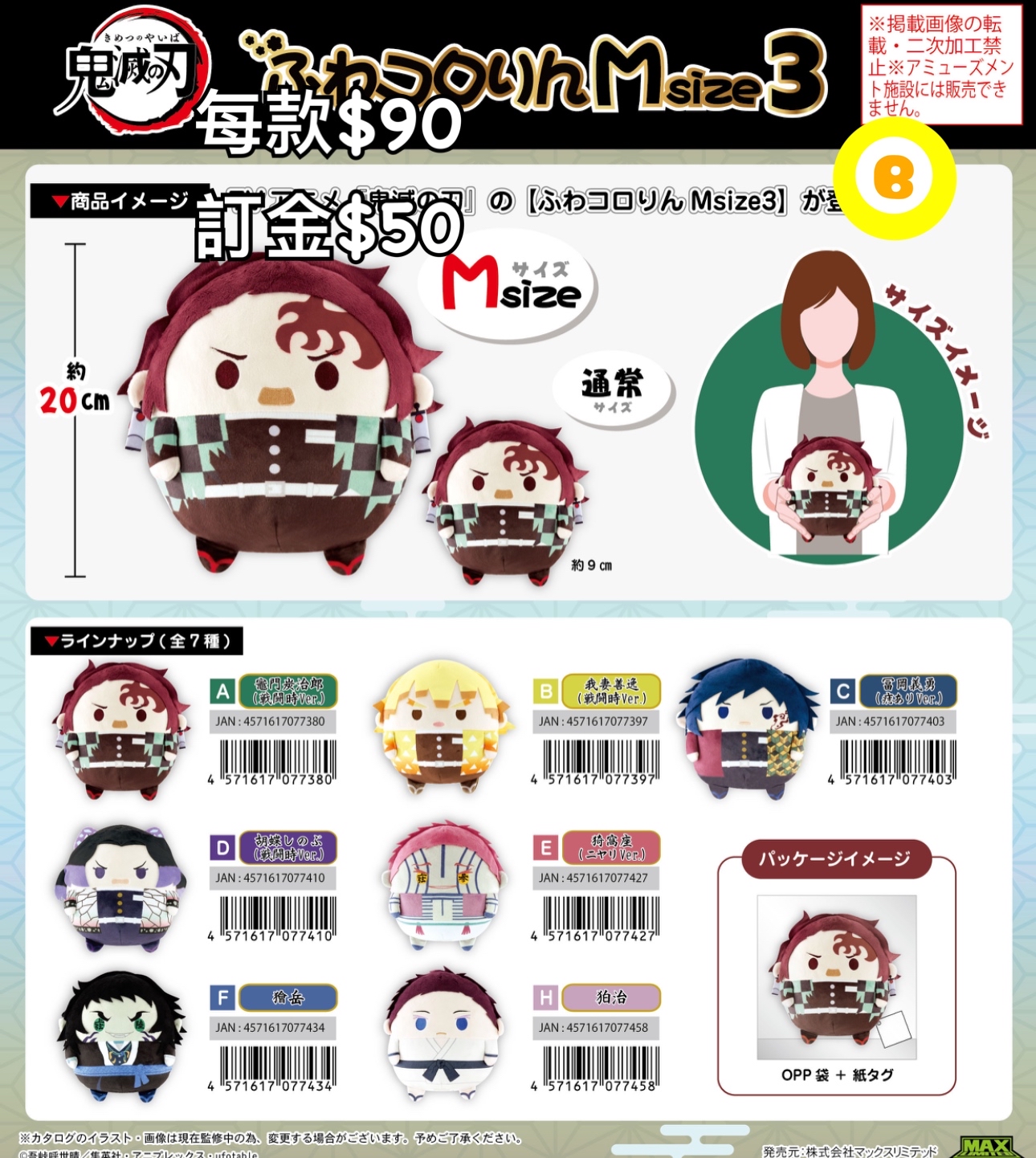 Preorder預訂3/2026年鬼滅之刃圓波波公仔-m size