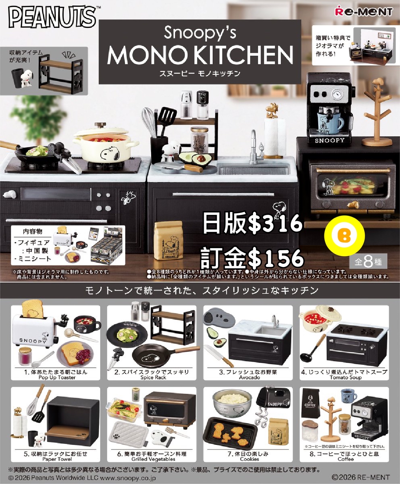 Preorder預訂3/2026年Snoopy's MONO KITCHEN rement