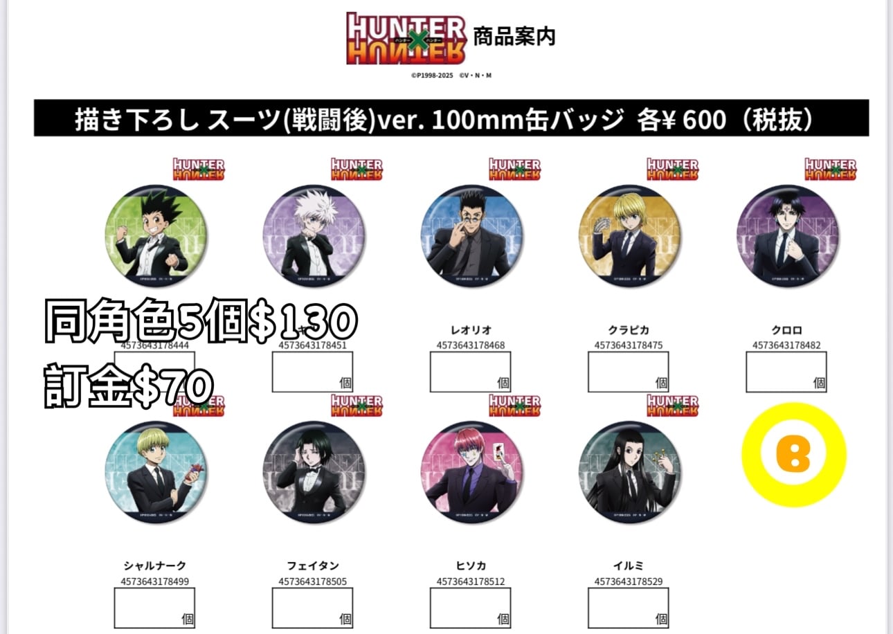 Preorder預訂3/2026年hunter x hunter 100mm襟章