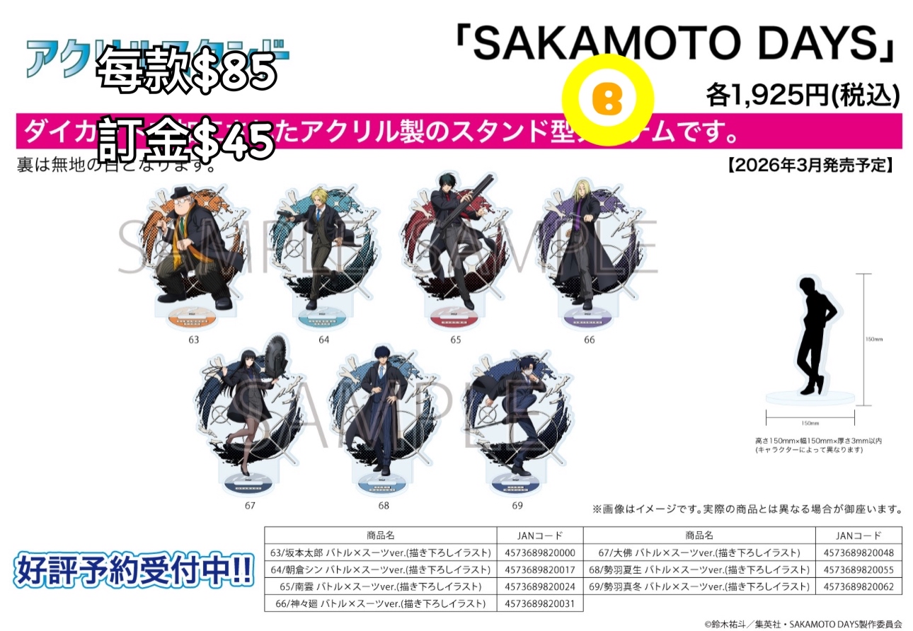 Preorder預訂3/2026年sakamoto days バトル×スーツ立牌