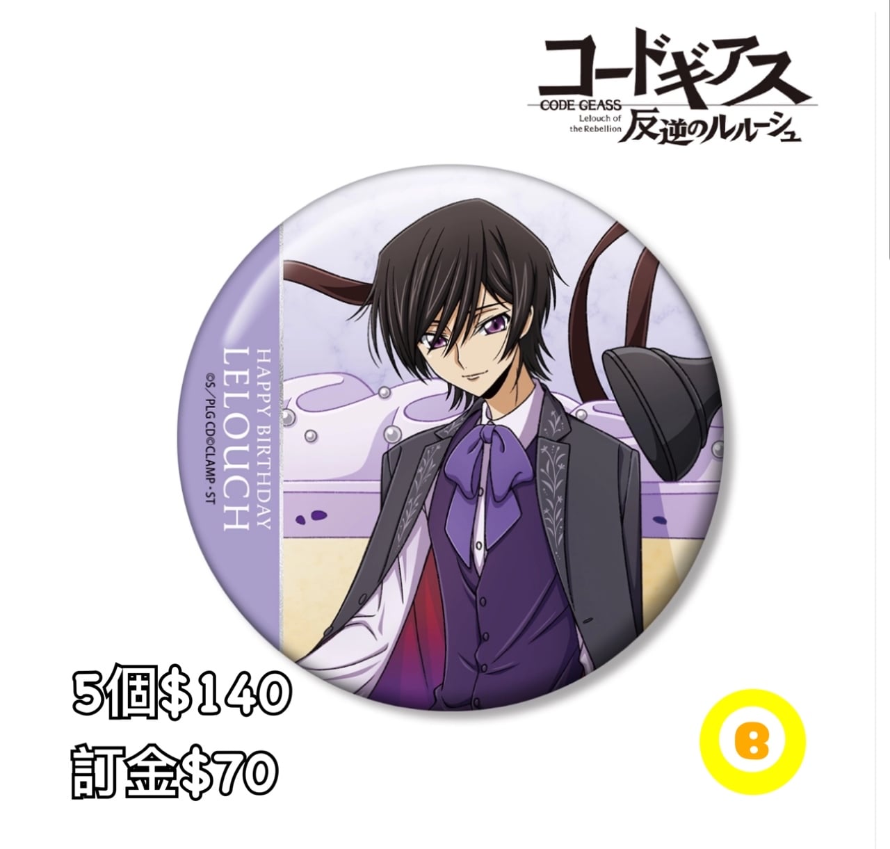 Preorder預訂4/2026年反叛的魯魯修100mm襟章