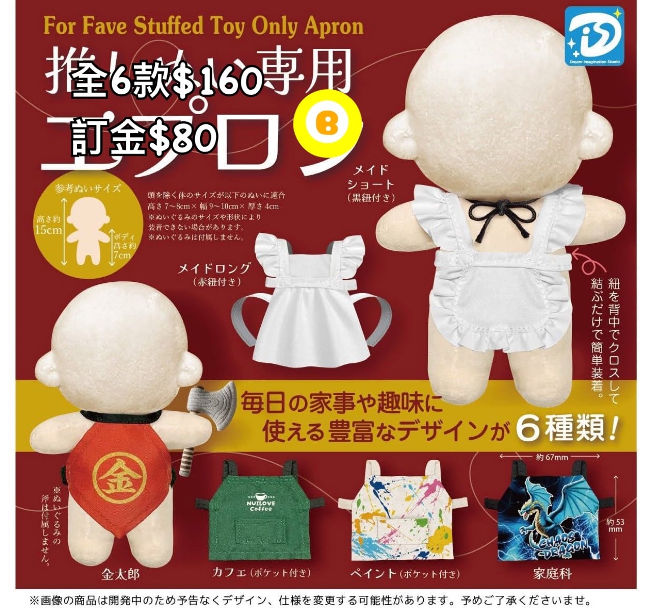 4/2026年日本發貨 預5/2026年到貨 全6款$160 訂金$80 🌟可到網站訂購(請見關於) 貨到屯碼/旺角面交/旺角合作交收中心取貨/荔枝角門市/順豐到付/平郵/易寄取 💡大型盒類商品只限面交或順豐到付 1️⃣如選擇郵寄的客人請明白郵寄存在一定風險、寄失或因郵寄途中有損壞小店無法負責 2️⃣預訂產品就發售日期及發售內容或款式可能會與最初公佈時有不同 3️⃣訂購商品為日版(如行版會列明) 4️⃣請明白商品製造時可能會有瑕疵(如sad,甩油有花等等)小店沒法保證及更換 5️⃣不接受盒角有損而更換/退貨/退訂 6️⃣扭蛋基本不連蛋殼交收,如要請事先提出 7️⃣到貨期10日-1個月多,視乎商品數量及發售日期而有早/有遲(另受供應商貨期如分幾次送貨、指定月分配送、物流延誤而有所推遲,請諒解) 8️⃣已落訂金商品如因缺貨/日本砍單/派貨數目不足/分配不均而無法交付,訂金一律退回。另請不要以落單後可以取消的心態下單,因為除以上情況外,一律不接受退訂 9️⃣到貨後請盡量盡快回覆交收方法/面交日期時間,必須一個月內完成交收(包括支付郵費),逾期商品會回收,所有費用一律不退還 以上適用於網站及IG全部商品和預訂以及不限時間(即使舊有預訂或現貨也適用) 本店保留隨時更改或終止部分條款之權利並視客人在成功下單後已接受及理解當中條款