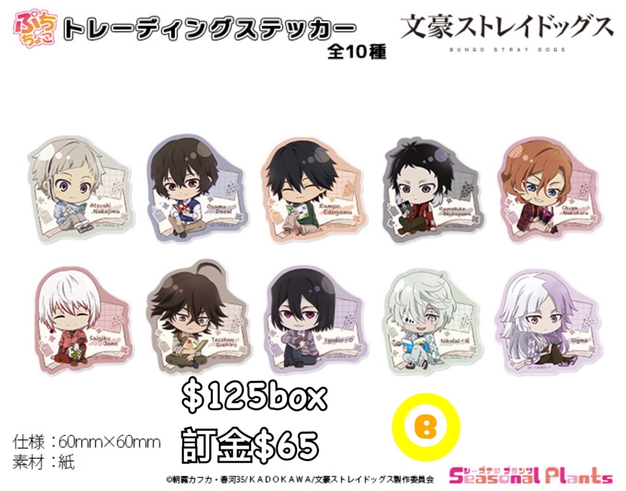 Preorder預訂4/2026年文豪野犬ぷちちょこ貼紙原盒