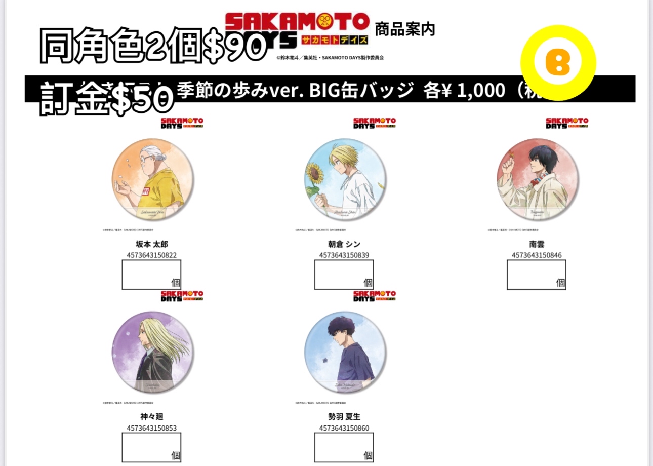 Preorder預訂4/2026年sakamoto days 季節の歩み襟章